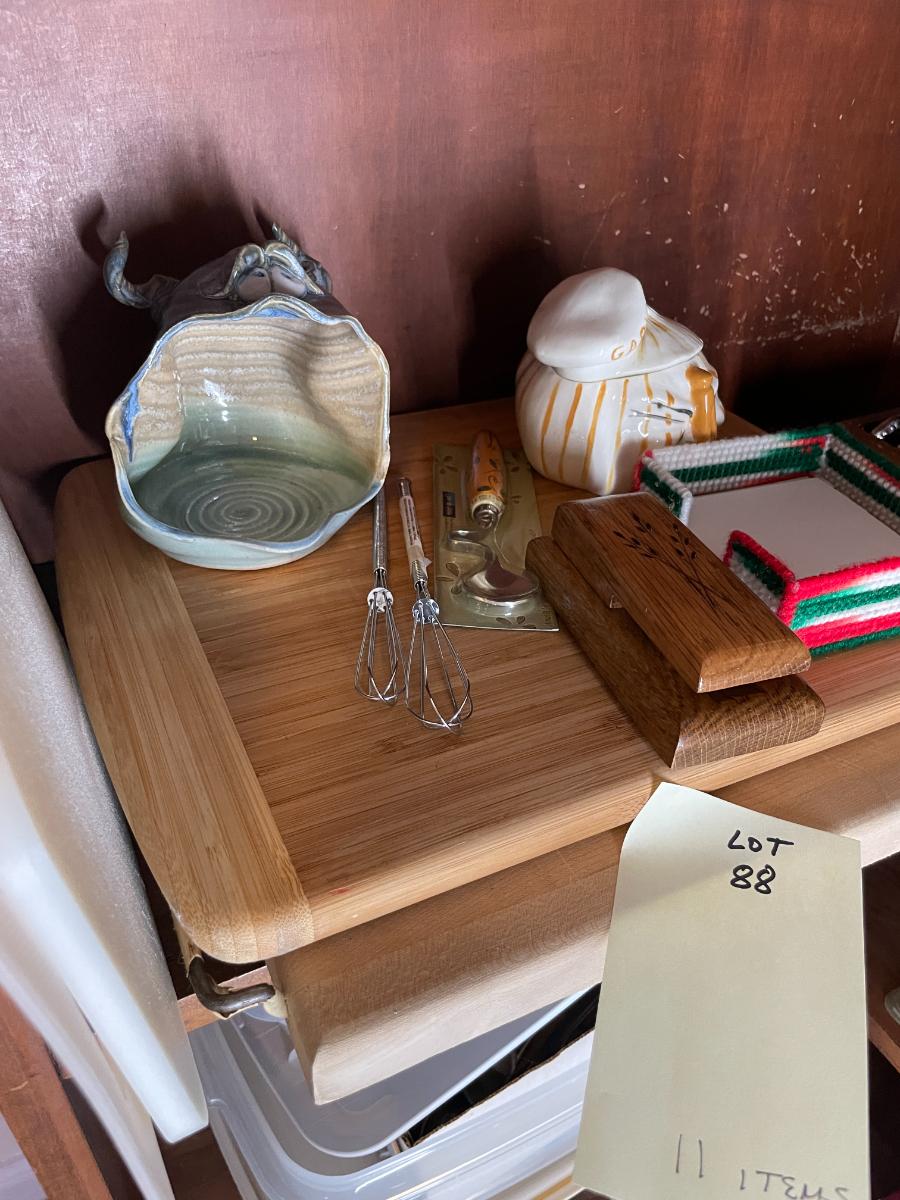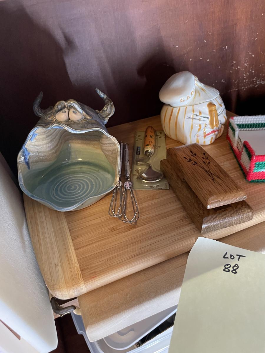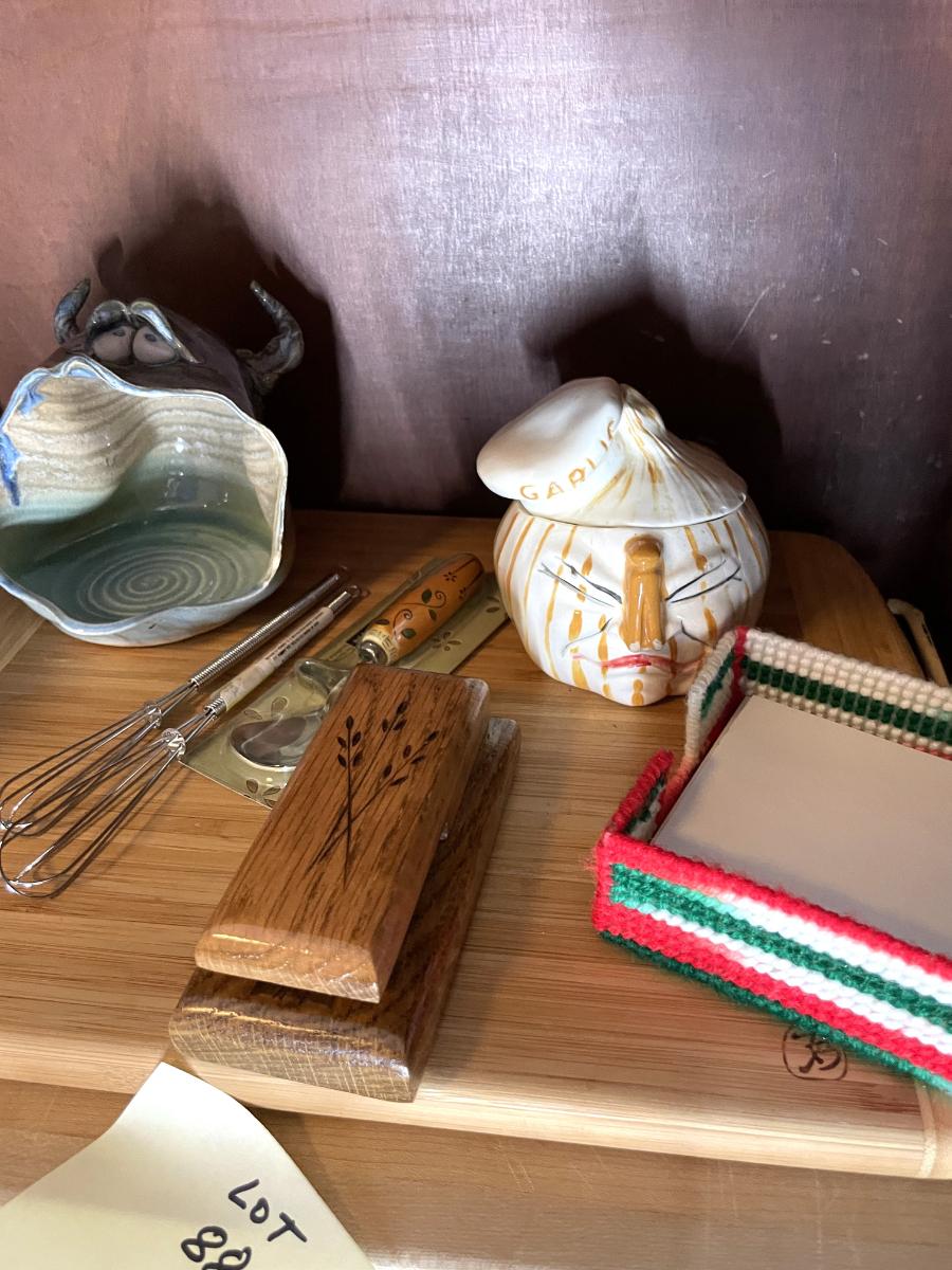 Cutting boards, garlic container, sponge holder etc. 11 items