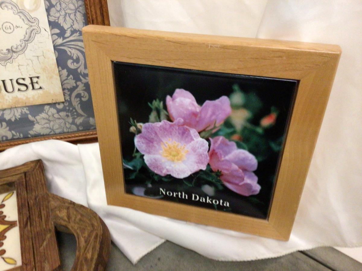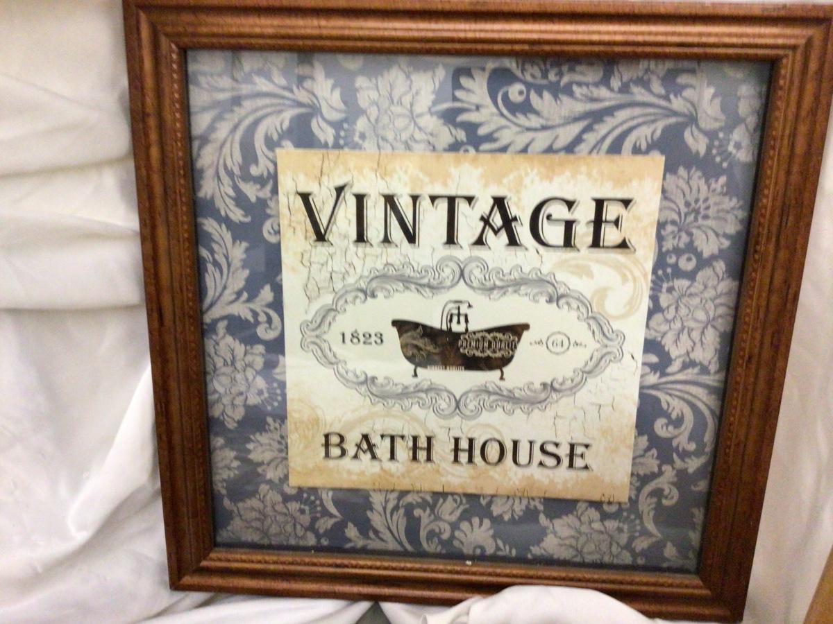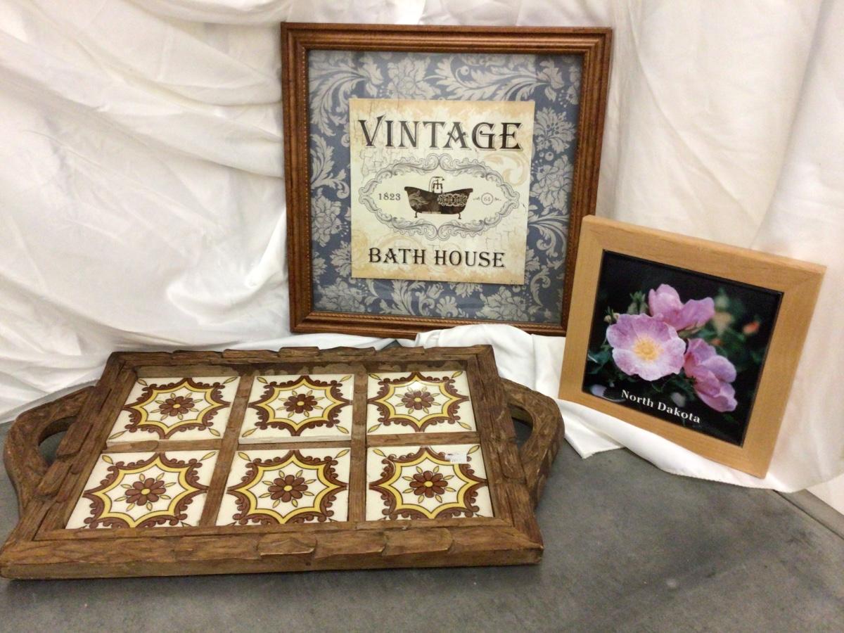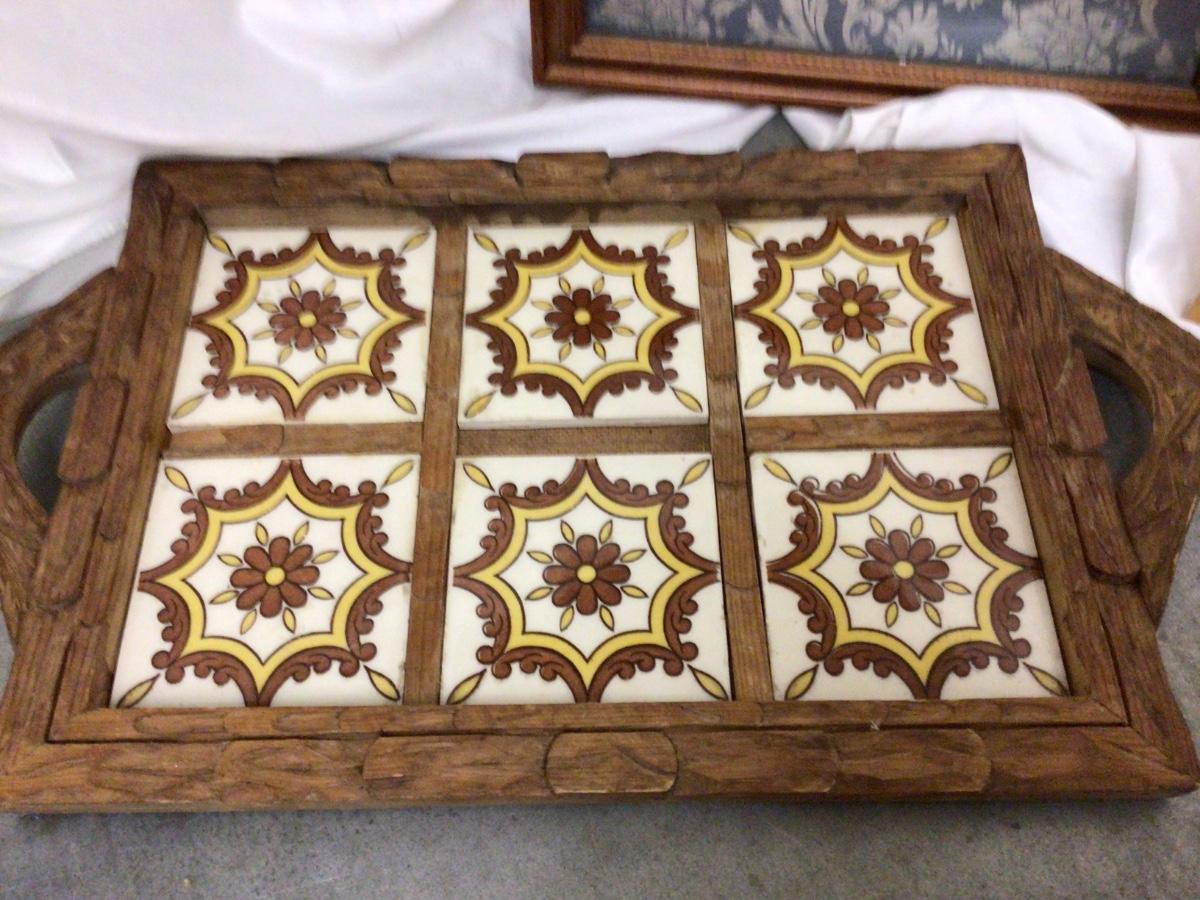 You get a great Tiki style tray with tiles, also a tile with ND flower cutting board, and a vintage bathroom picture