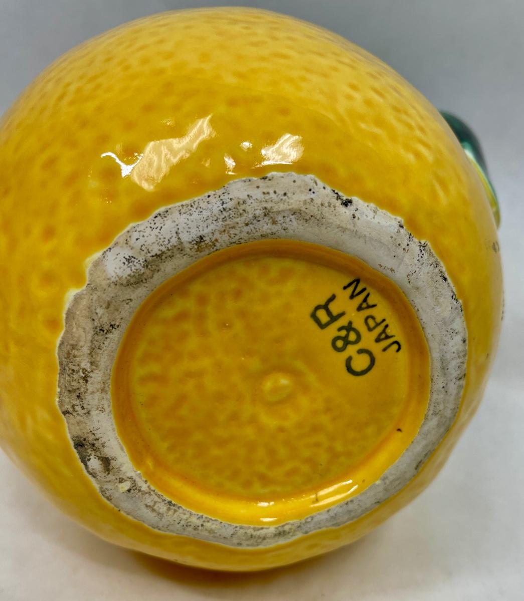 By C&R of Japan, with Green Leaf Handle. Pitcher is approx. 6.5" tall. Good condition.