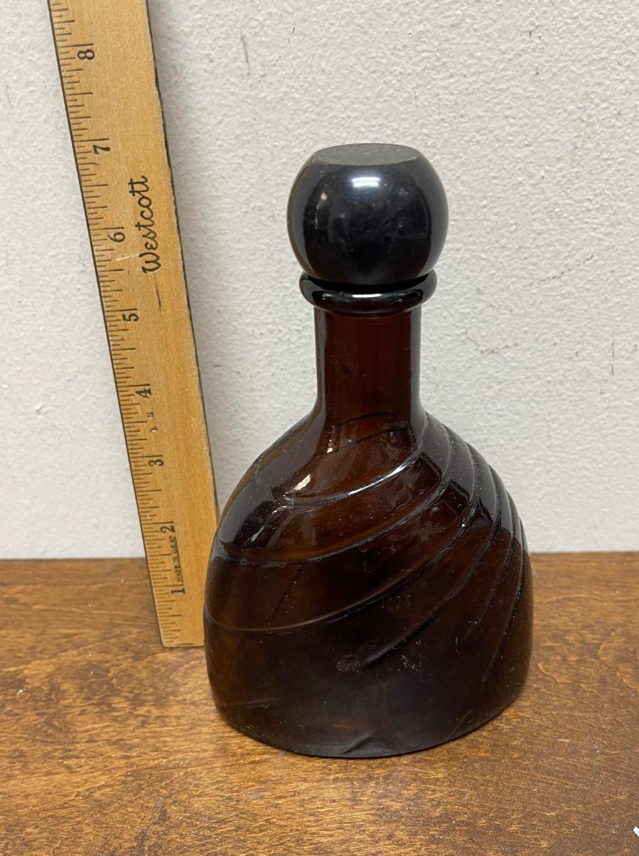 Brown Glass 375ml Godiva Chocolate Liquer Bottle Concentric Diagonal Slash Lines Oval Bottom