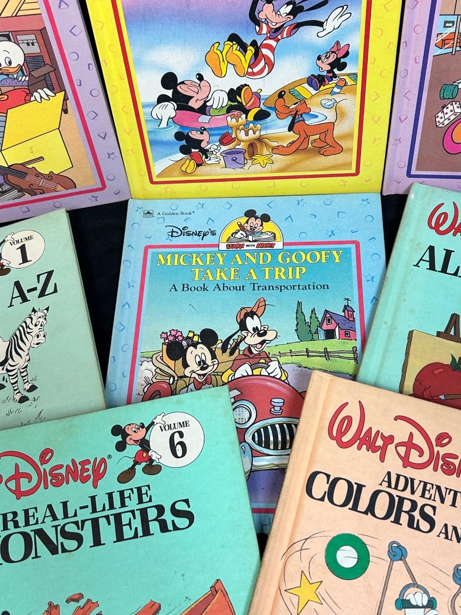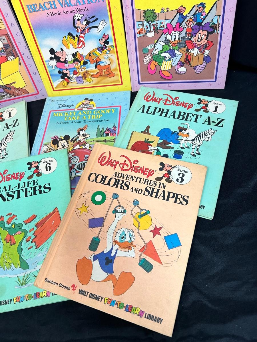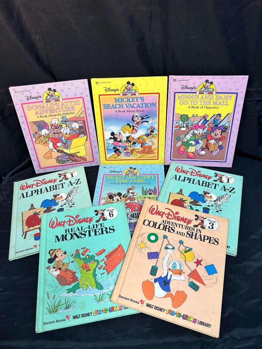 Lot of 8 Walt Disney Young Child Learning Educational Books Alphabet Colors Shapes Words. Disney books featuring children's favorite characters teaching things like the alphabet, words, colors, shapes, and more. In good condition. Two different series.