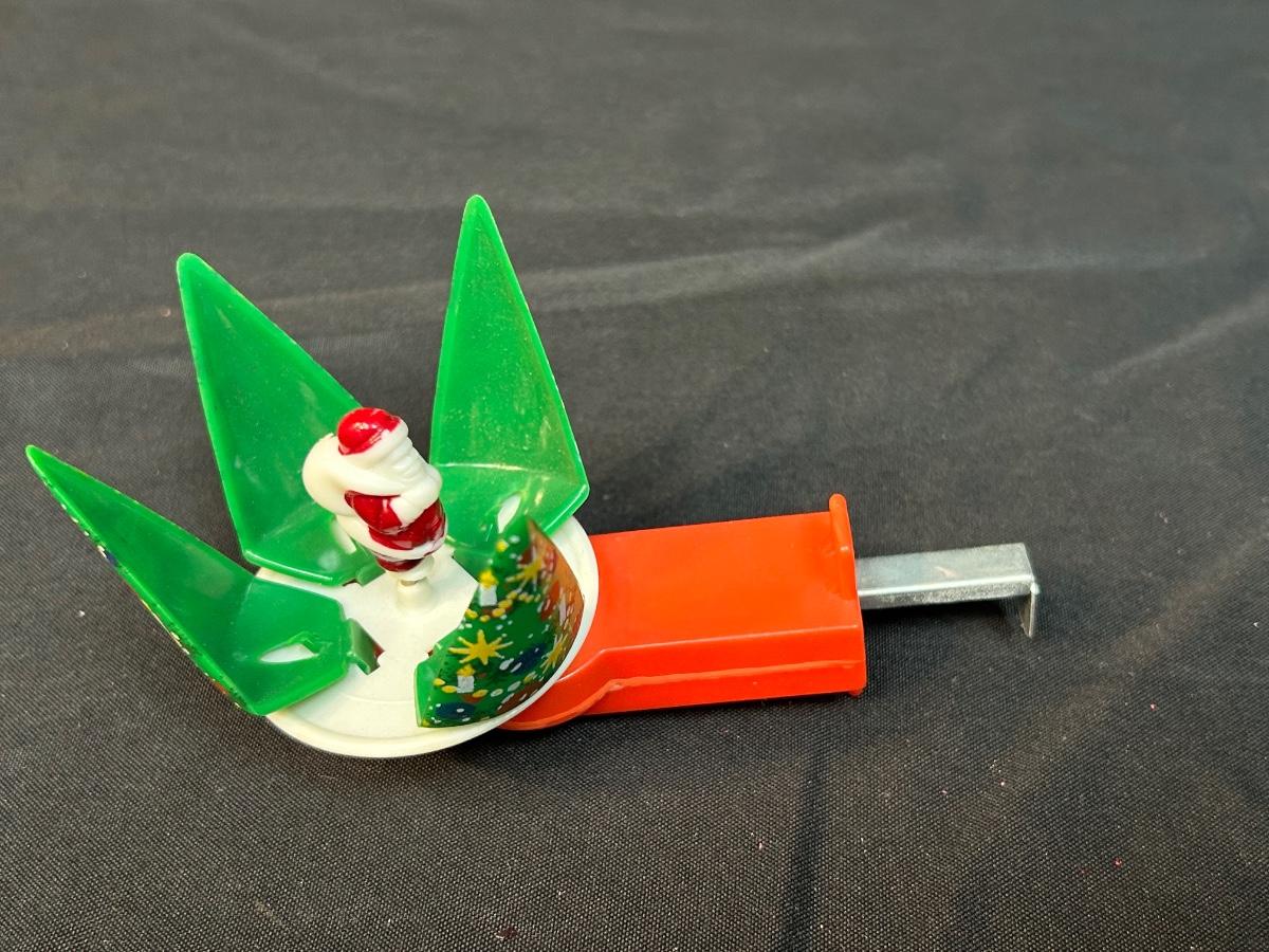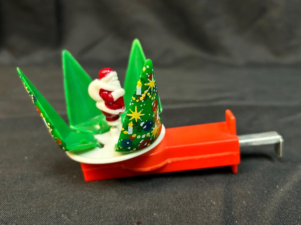 Retro Jimmy Toys Plastic Spinning Christmas Holiday Tree with Santa Inside Children's Toy. In good condition. Push button to make tree spin.