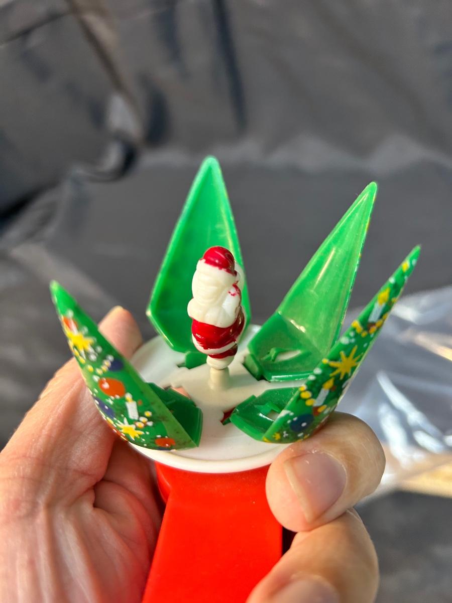 Retro Jimmy Toys Plastic Spinning Christmas Holiday Tree with Santa Inside Children's Toy