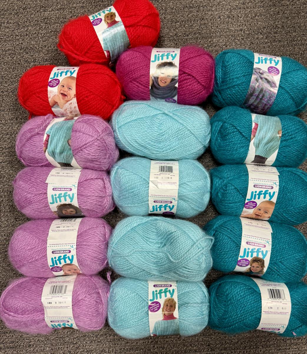 Vintage Yarn Remnant Lot # - Red, Lavender, Aqua, Teal Jiffy Brand
