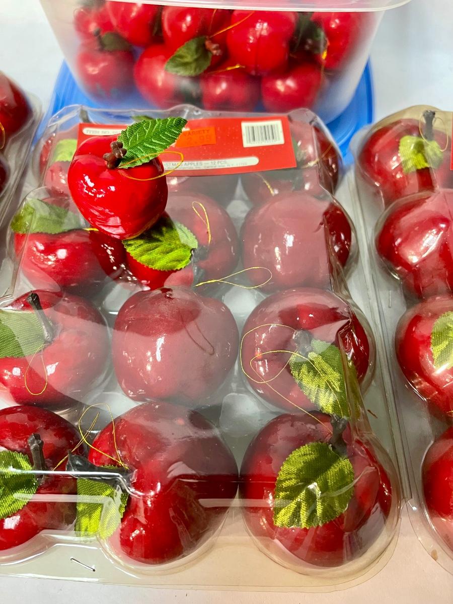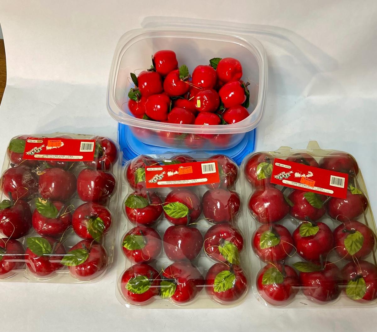 Vintage RED APPLE Green Leaf 1.5” & 2" CHRISTMAS ORNAMENTS Holiday Decor Lot