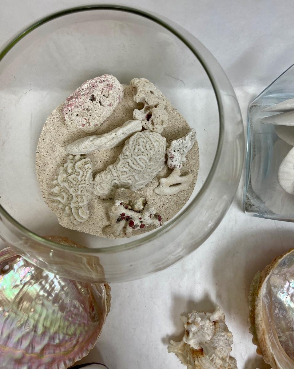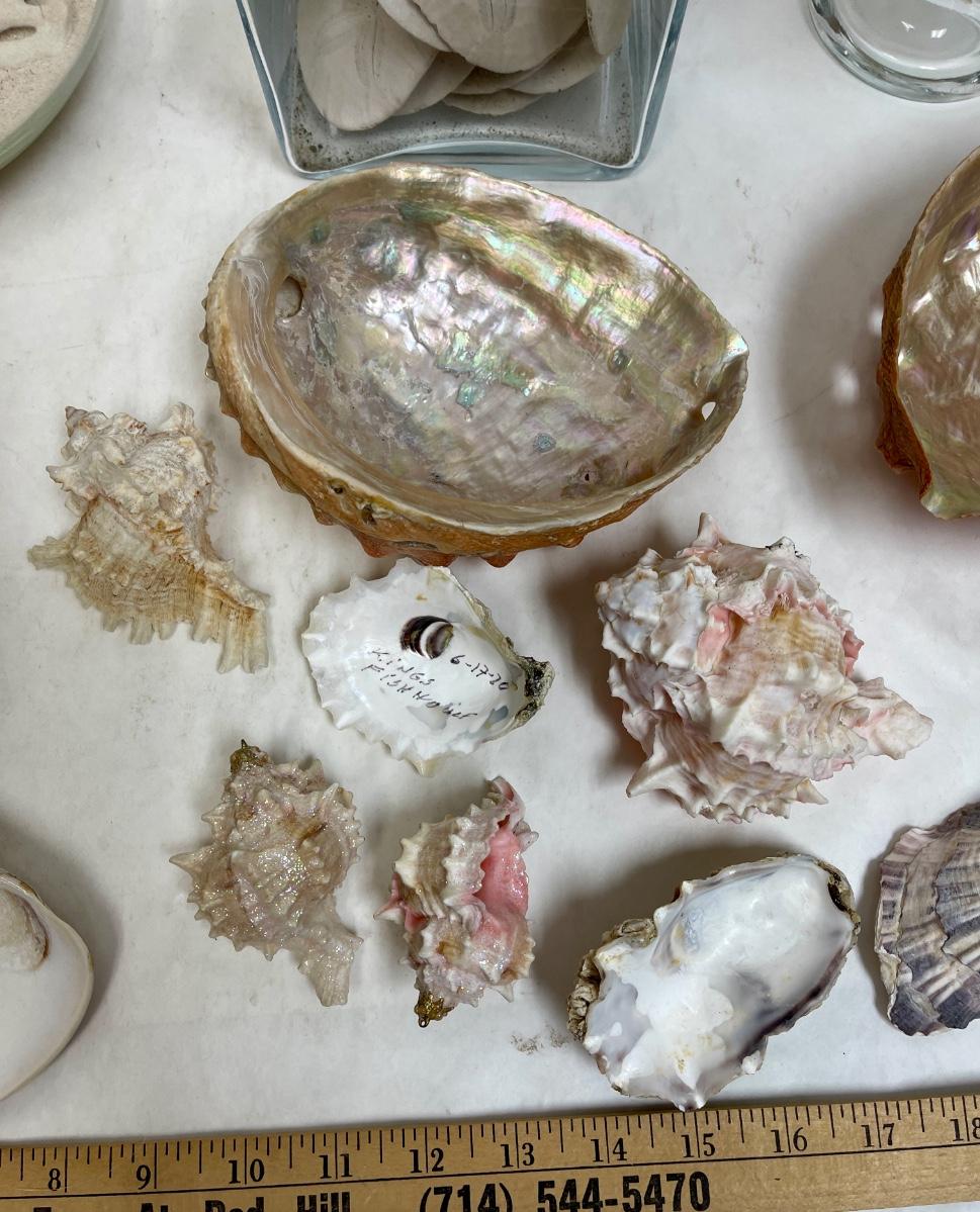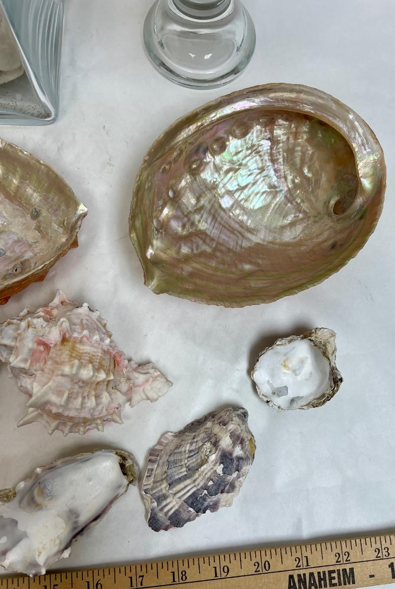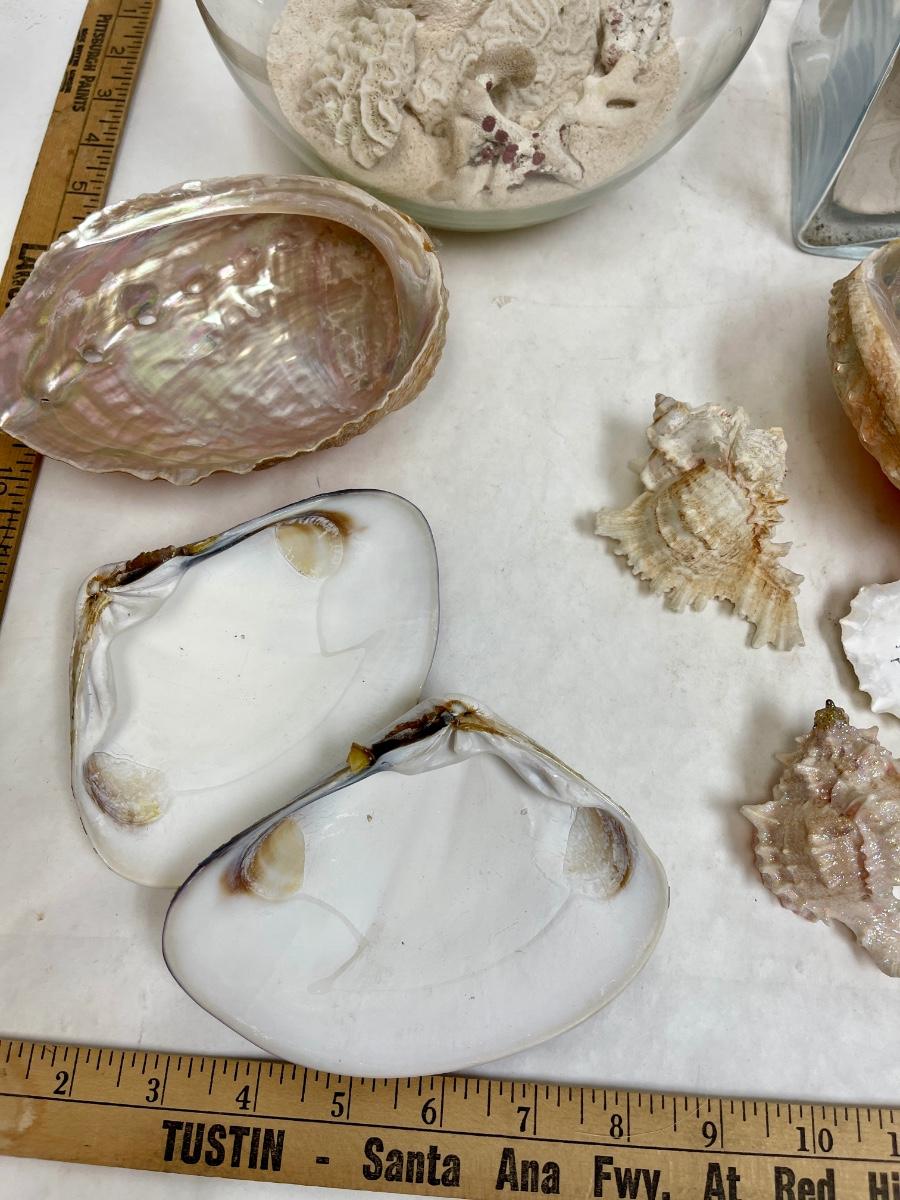 Sea Shell Lot - various types and sizes, including Sand Dollars with three glass containers