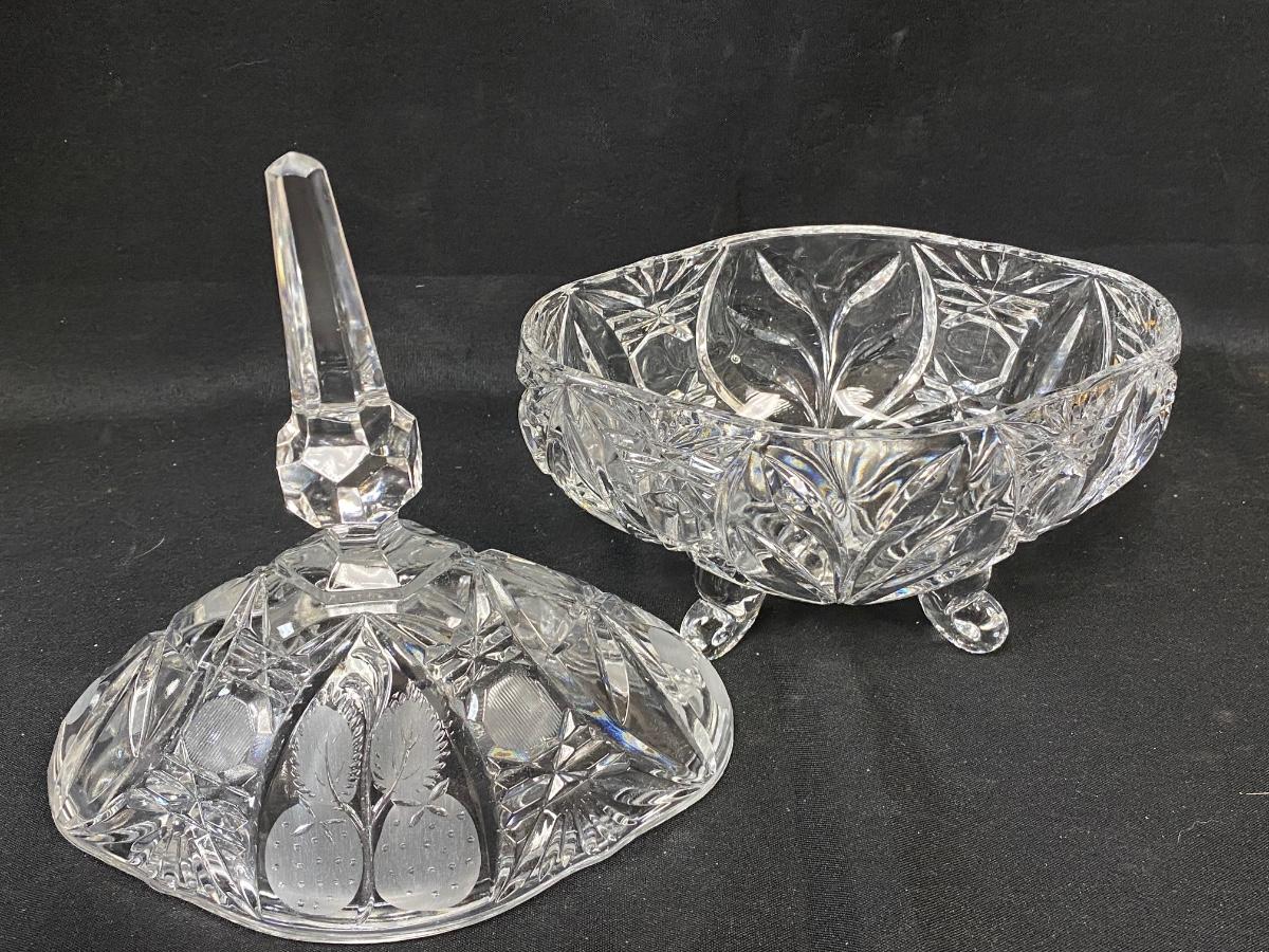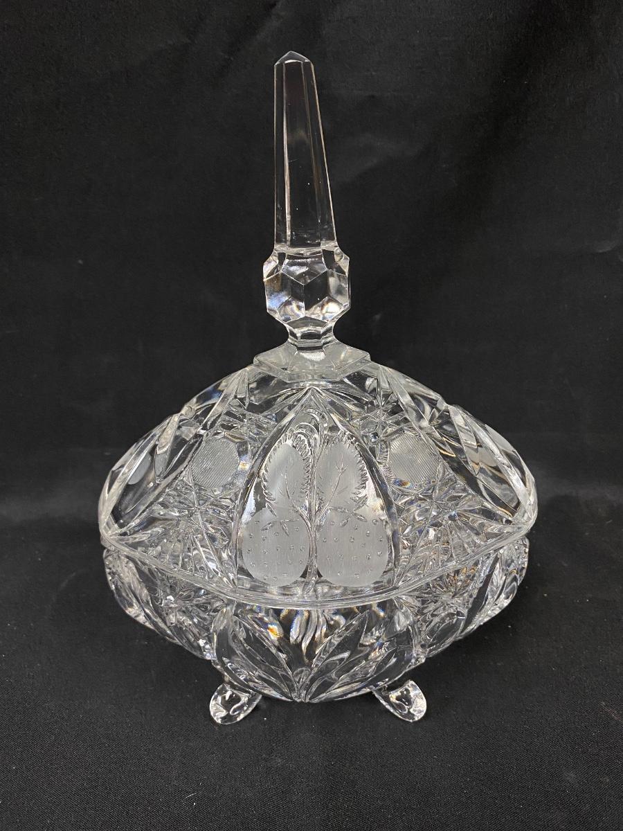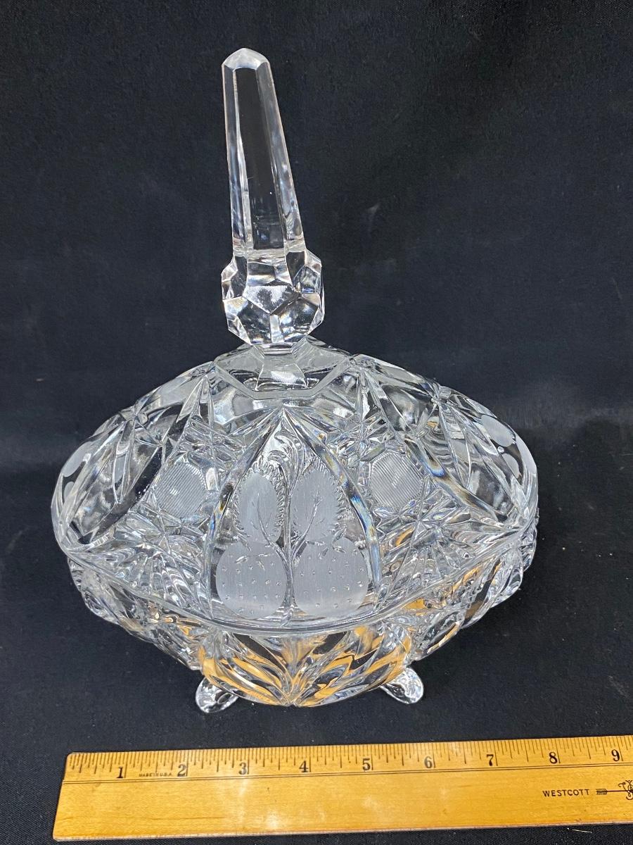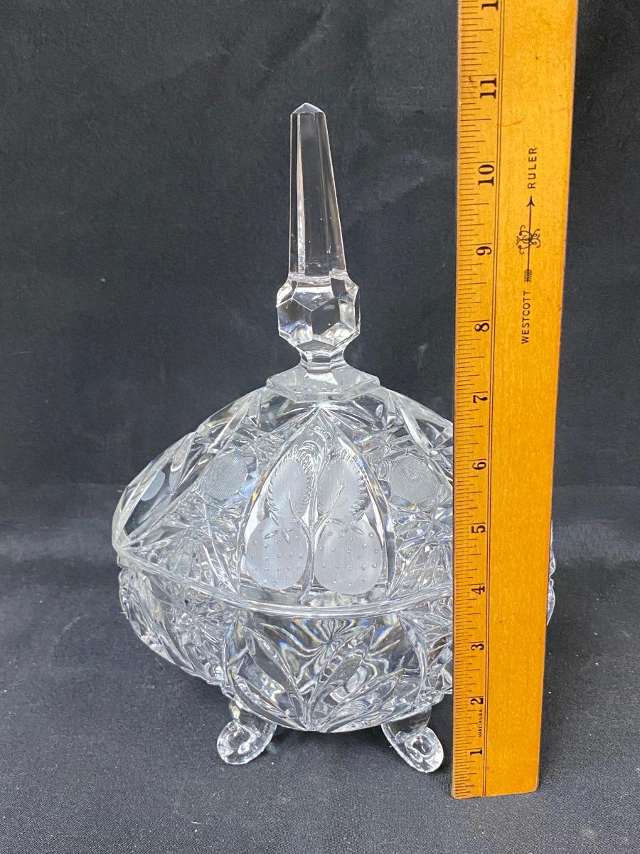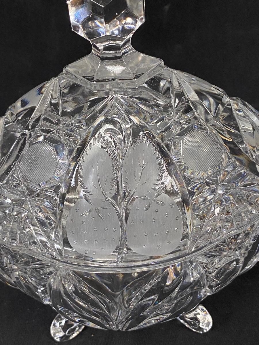 Vintage Strawberry Patterned Footed Covered Lidded Candy Dish Compote with Spire Top