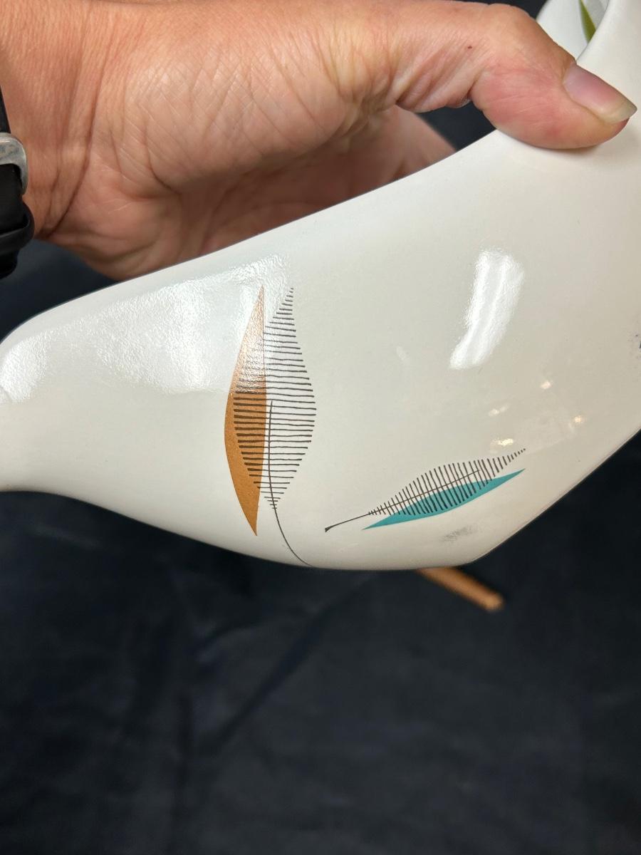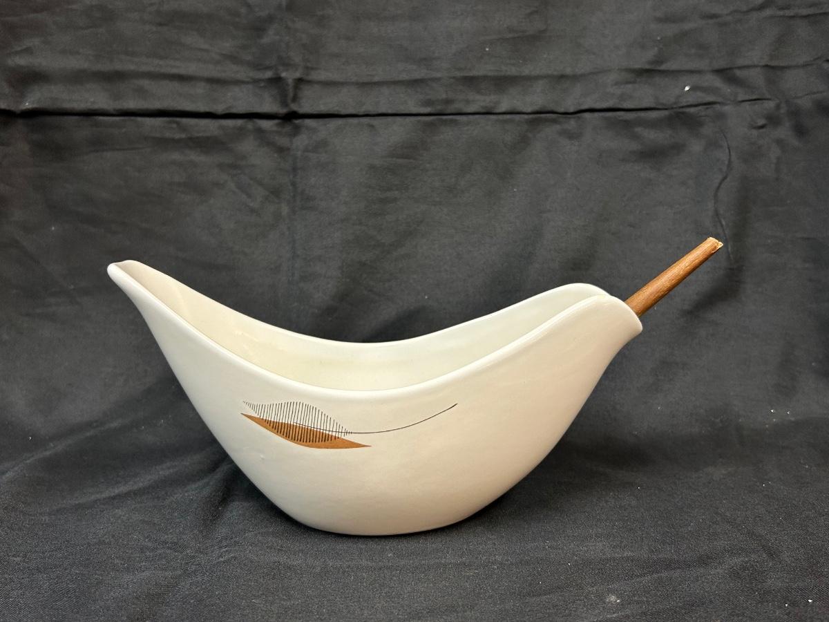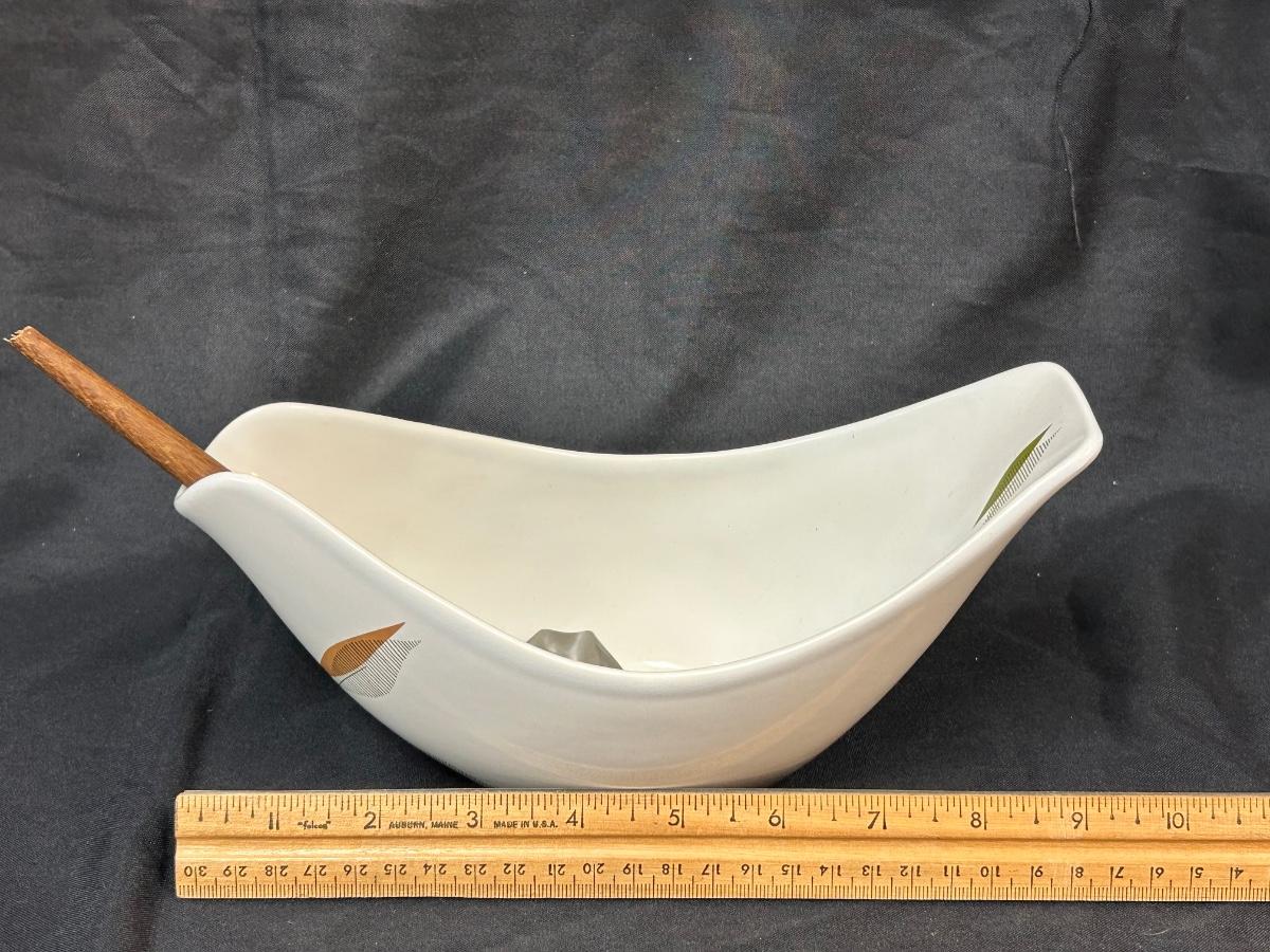 Vintage Midcentury Festive Leaves Raymor Universal Ben Seibel Design Serving Gravy Sauce Bowl with Teak Handle Ladle Spoon