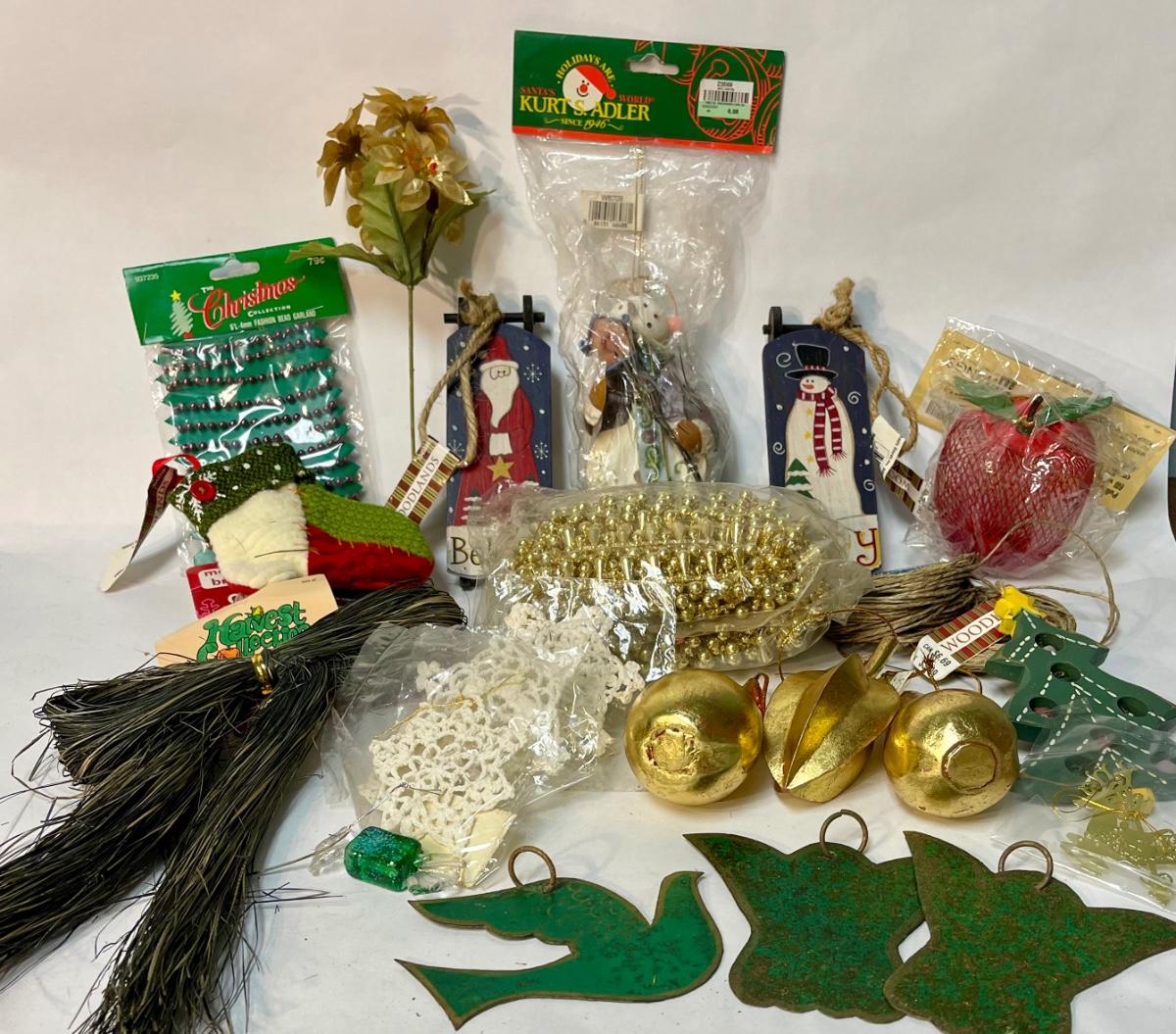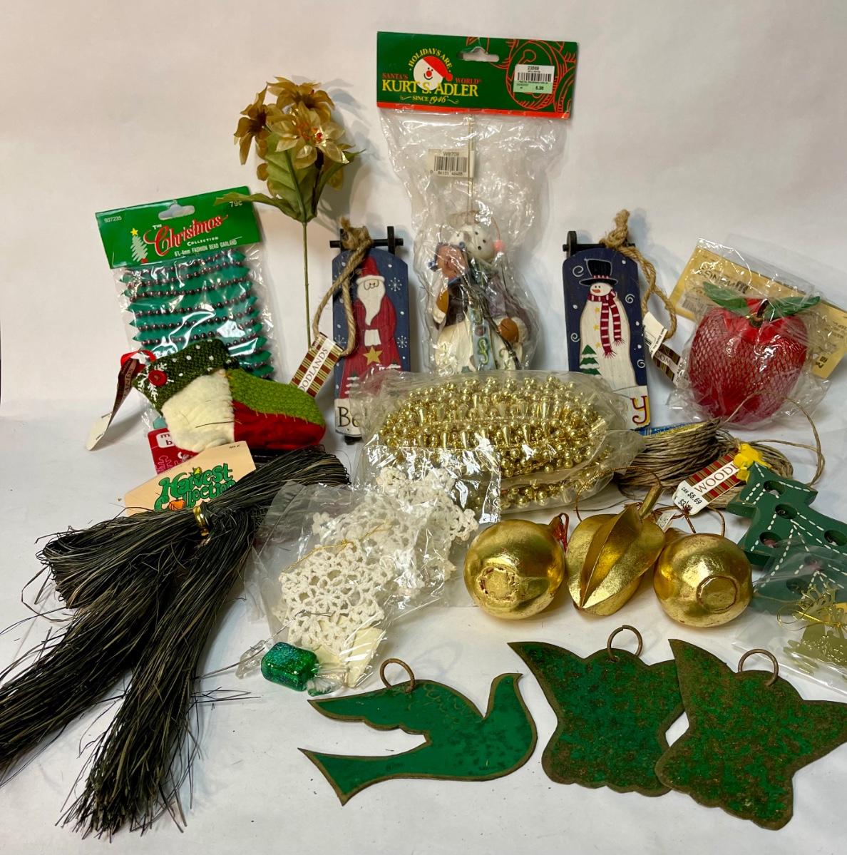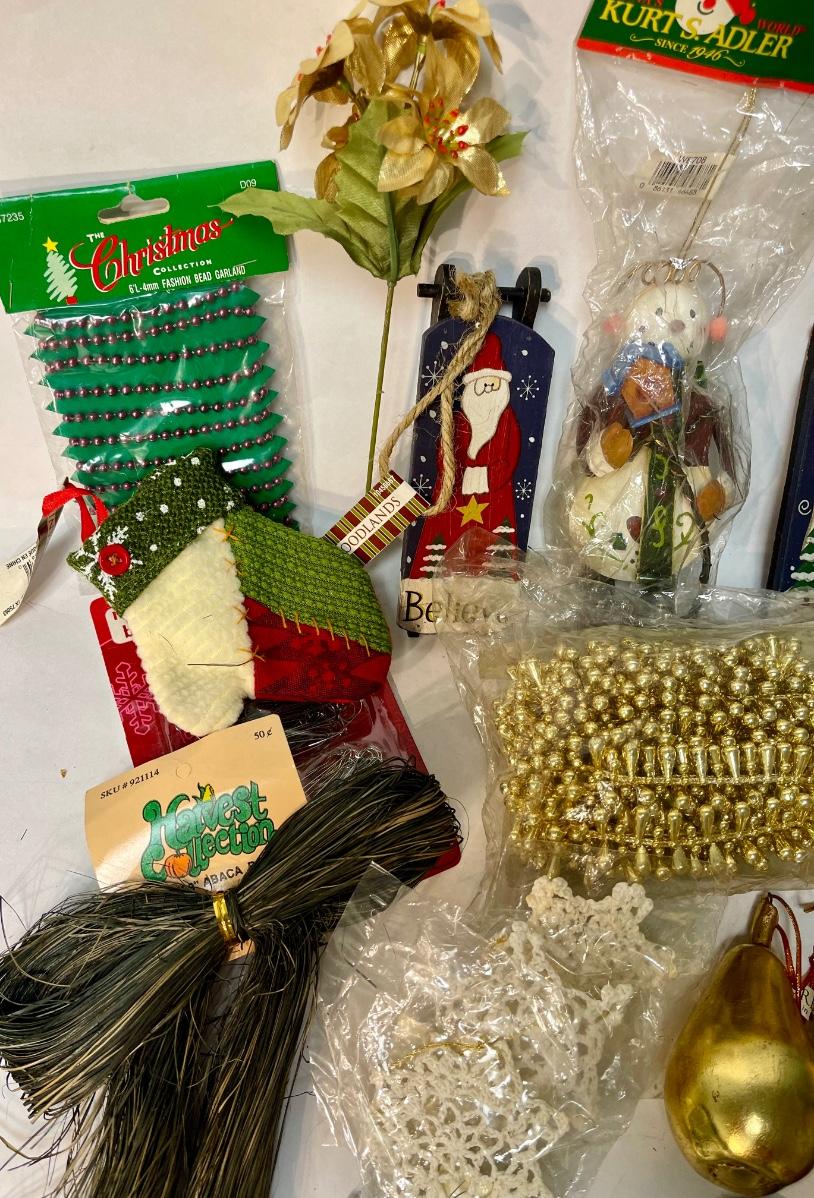 Misc. Christmas Holiday Decor Lot - Kurt S Adler ornaments, beaded trim, bows, etc.