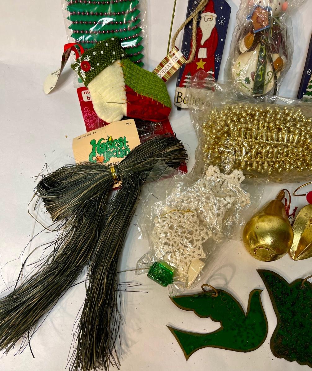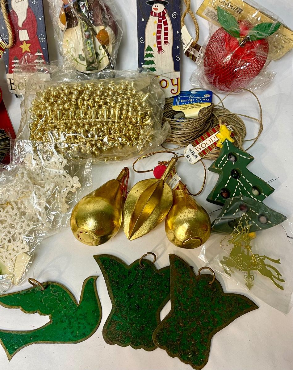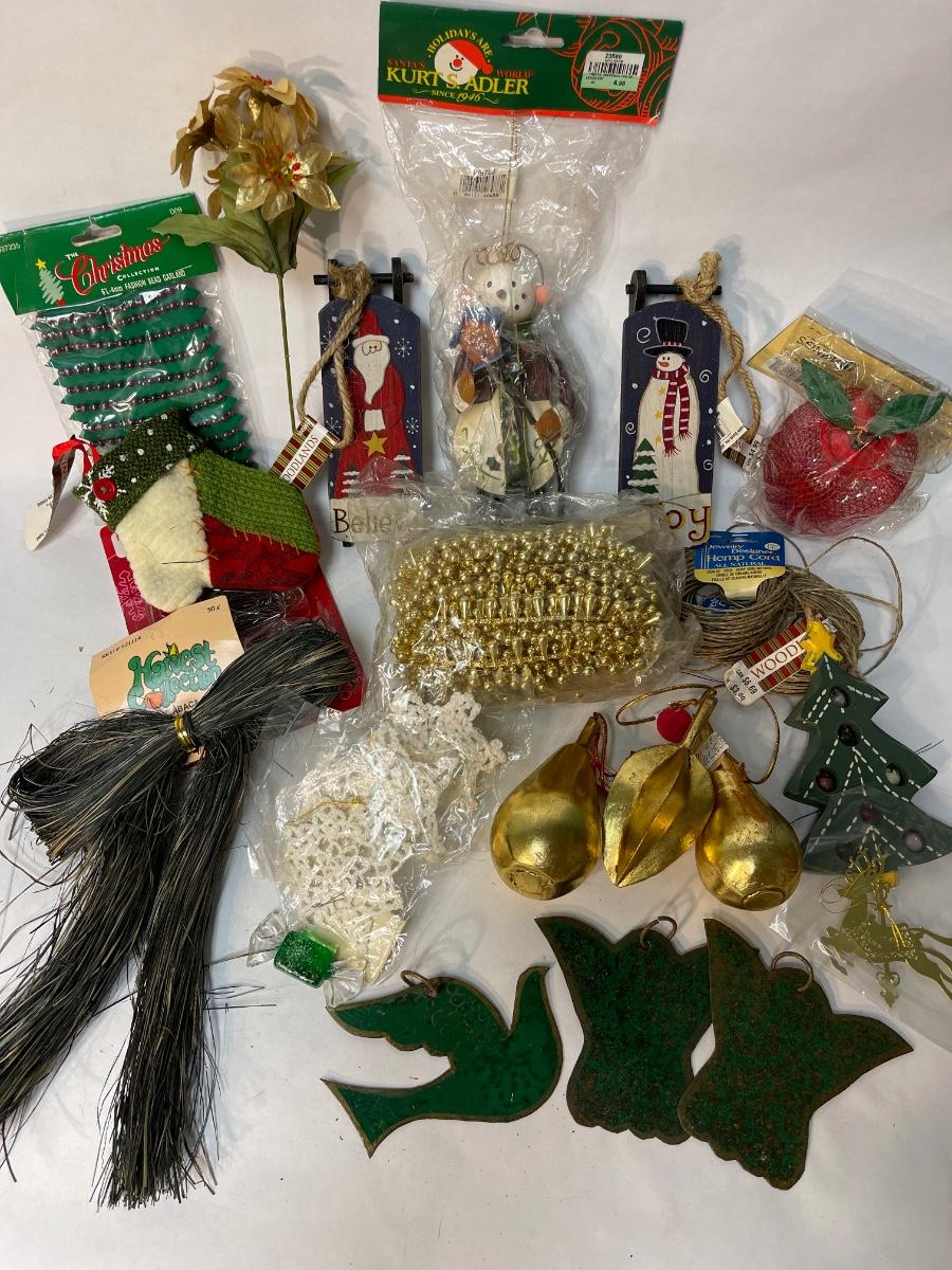 Misc. Christmas Holiday Decor Lot - Kurt S Adler ornaments, beaded trim, bows, etc.