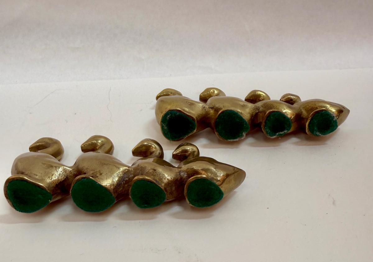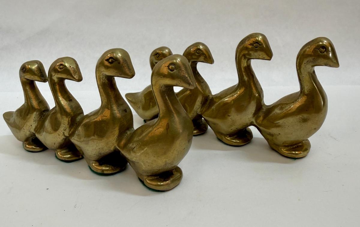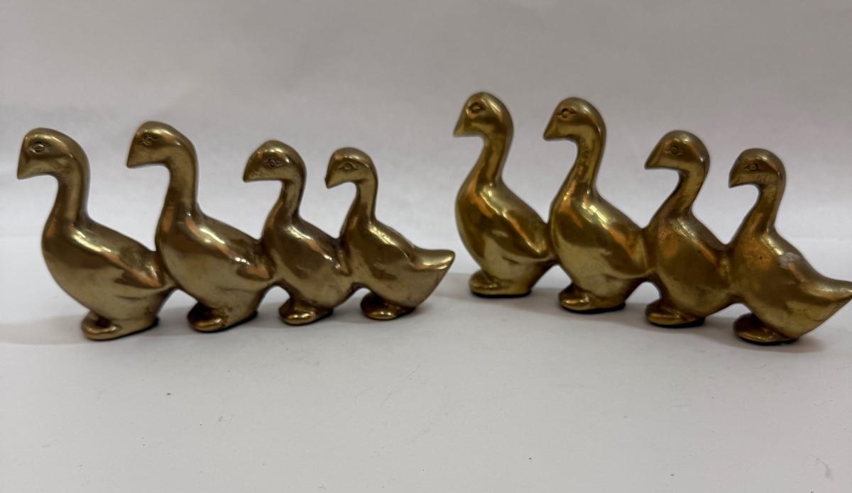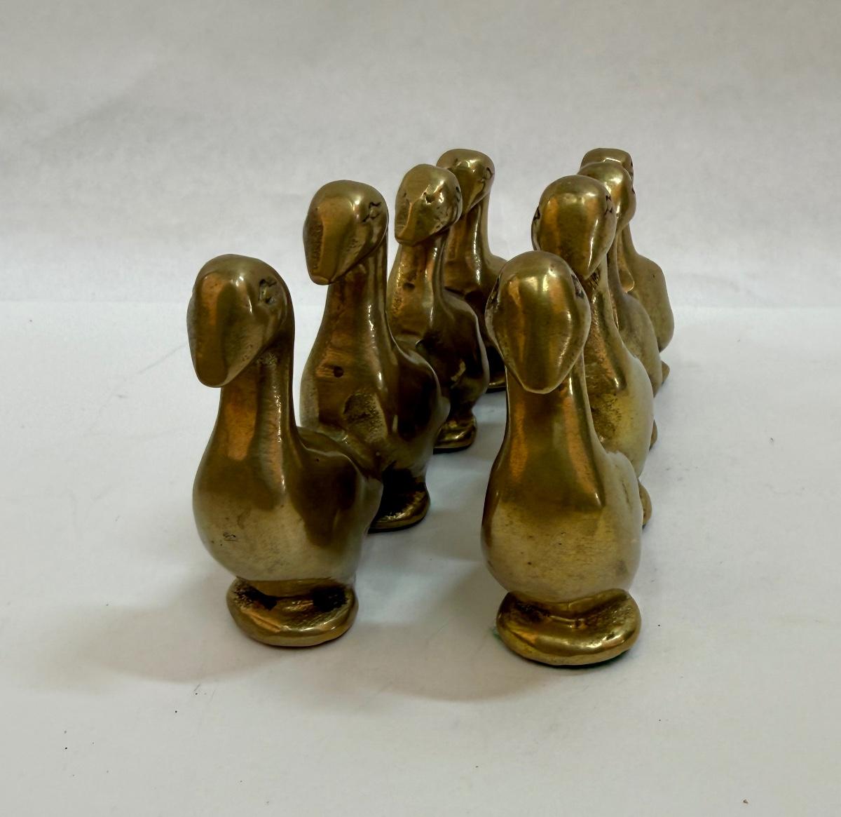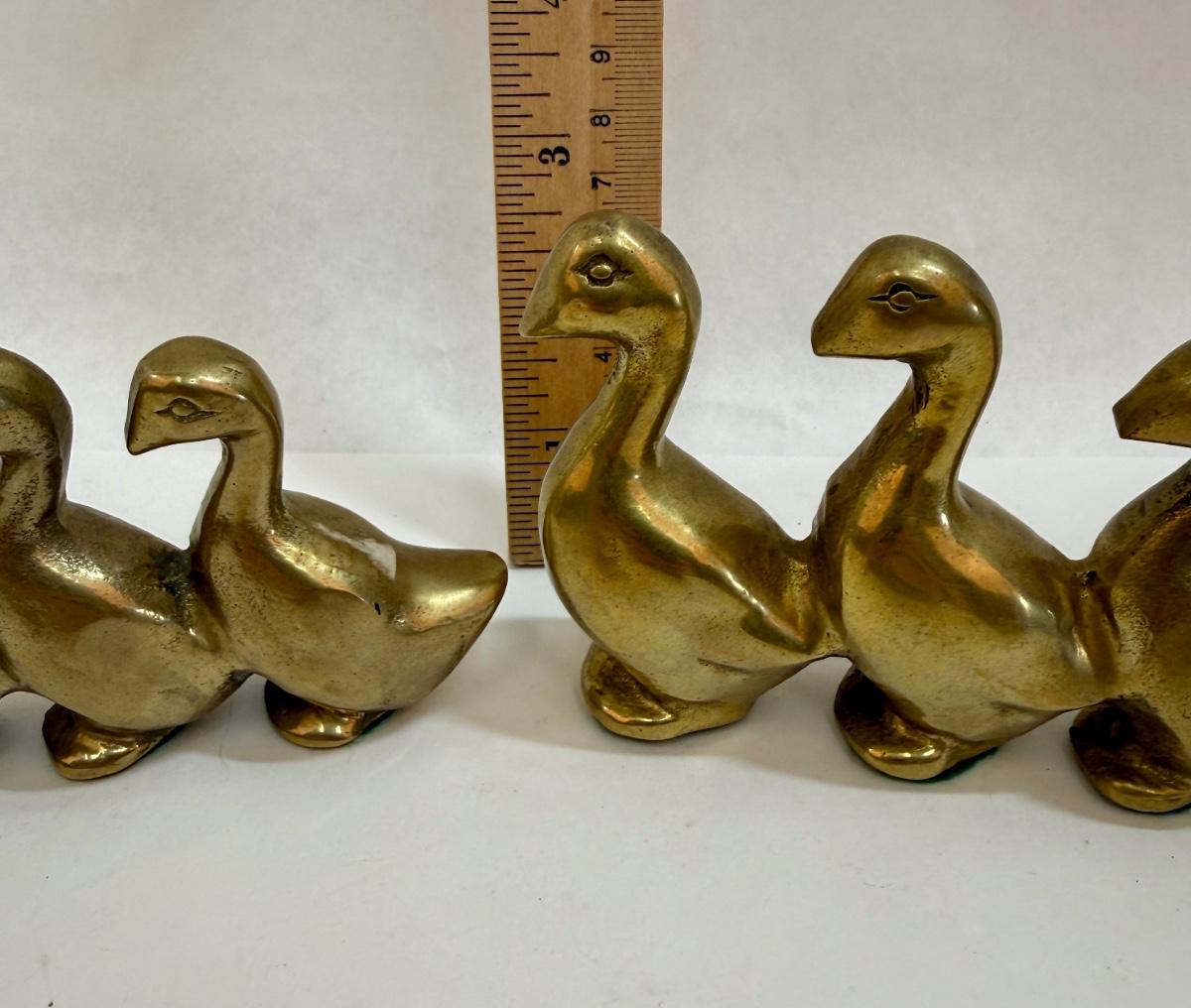 Vintage Pair of Brass Four Ducks in a Row MCM Figurine Paperweight 6" Long