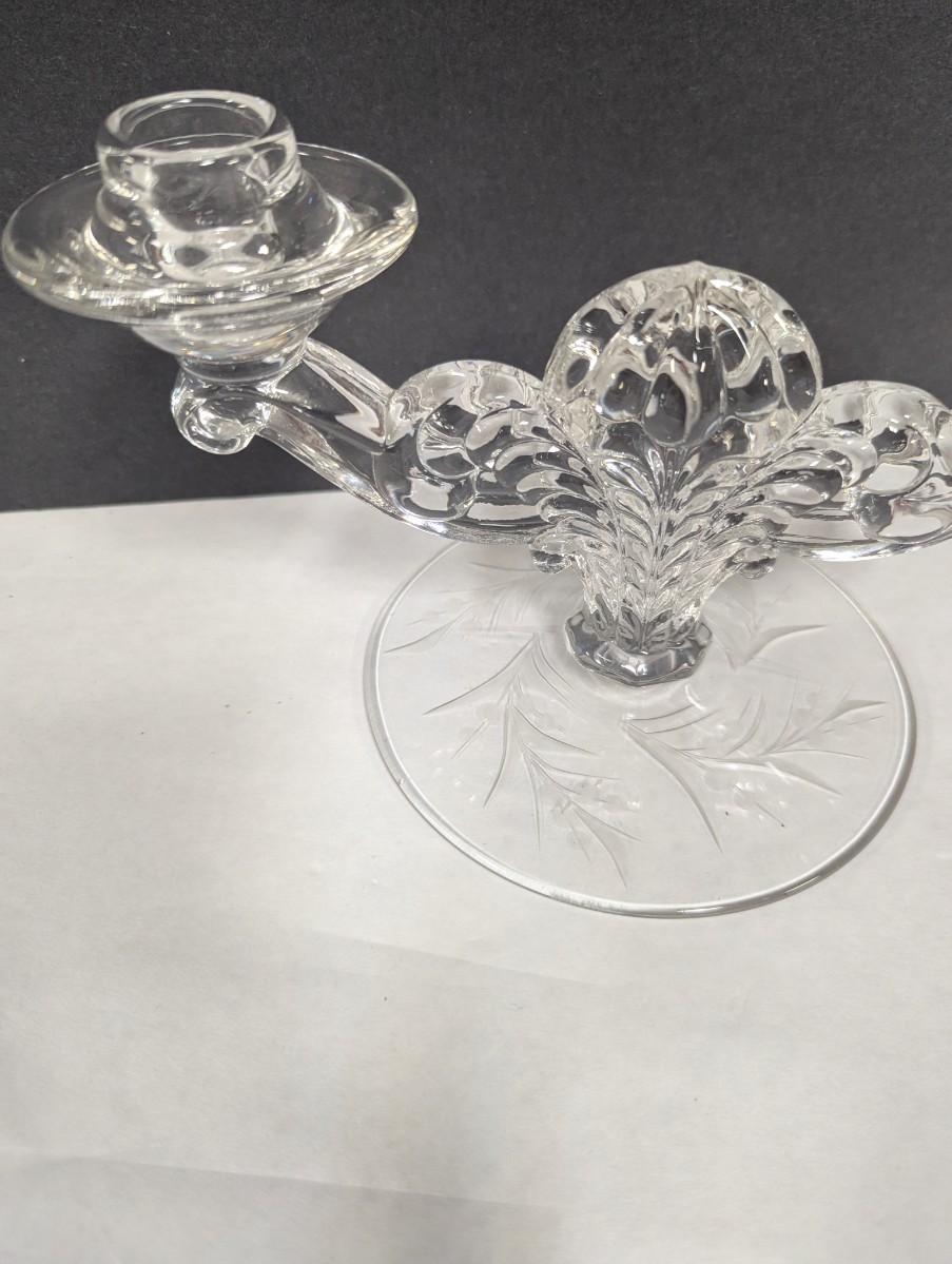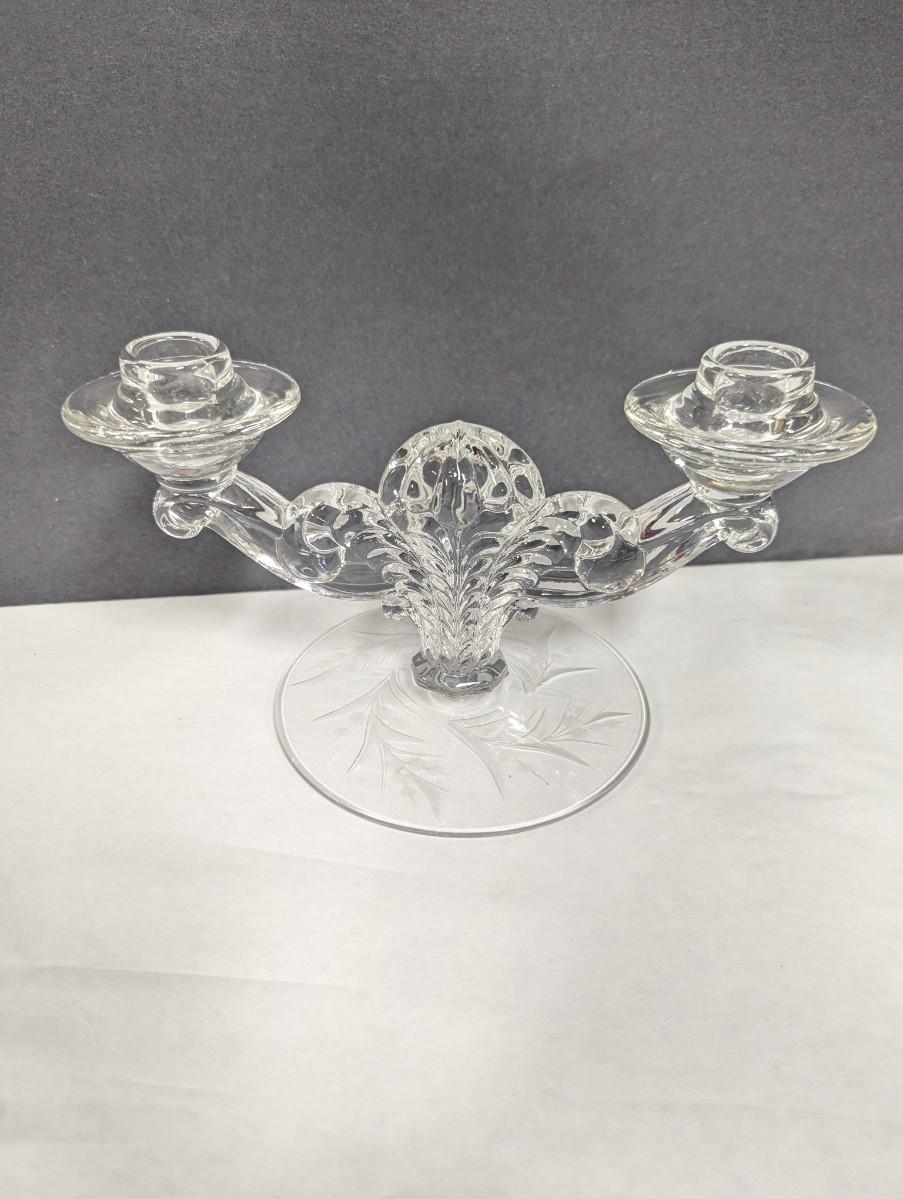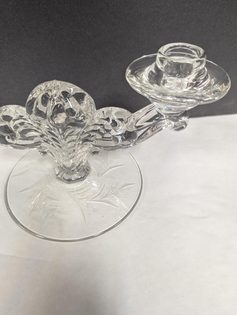 Cynthia Cut Crystal By Fostoria Double Light, Etched Floral Design On The Base
