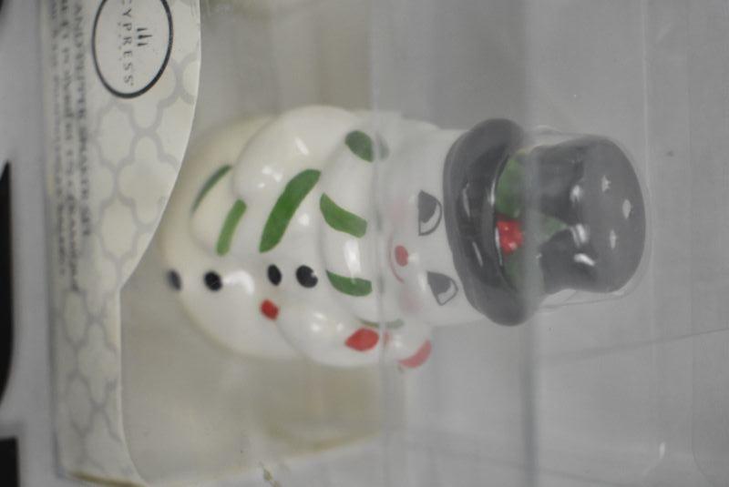 Cypress Ceramic Salt & Pepper Shakers, Snowmen - New