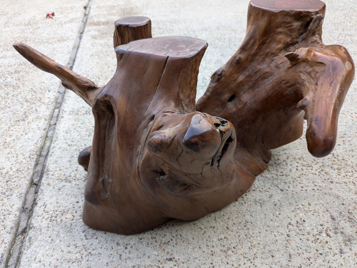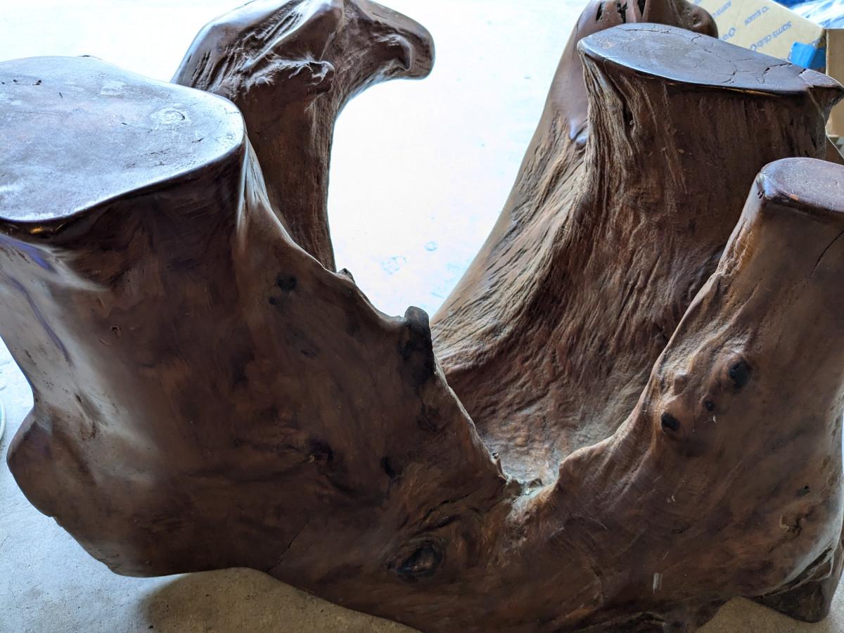 Cypress wood tree coffee table base only ; no glass; needs glass top 1536880