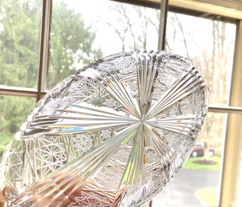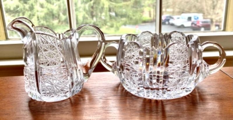 3 p set vintage Bohemian cut crystal . Sugar bowl (4” diameter, 6.5 across handles) , cream pitcher (4.5 x 4.5 ) and celery ( 9.5 x 5” )