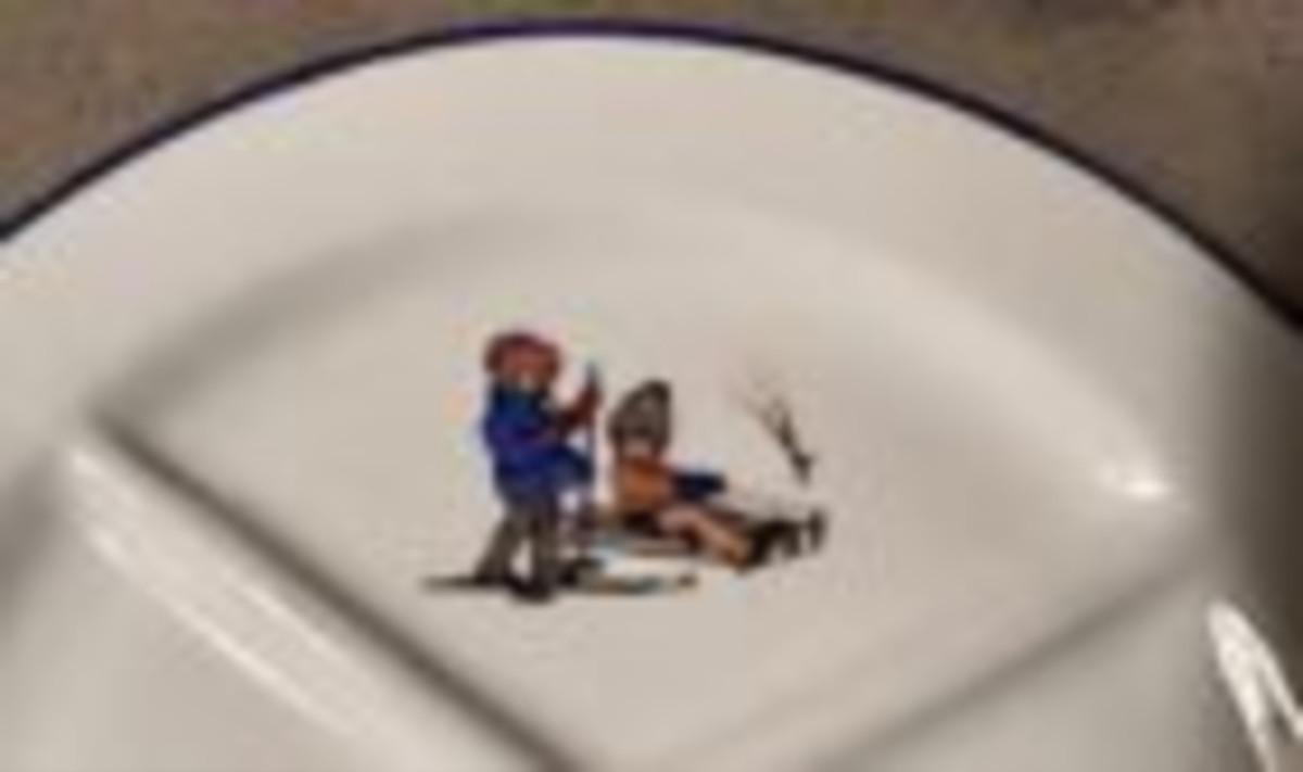 Here is a charming child's plate from the Czech Republic...Excellent condition on the vintage transfers..Blue edge..One fleabite underside of rim...7" diameter...as shown...Circa 1930s.