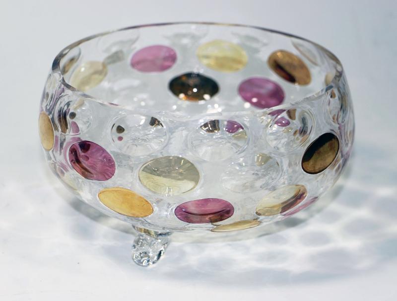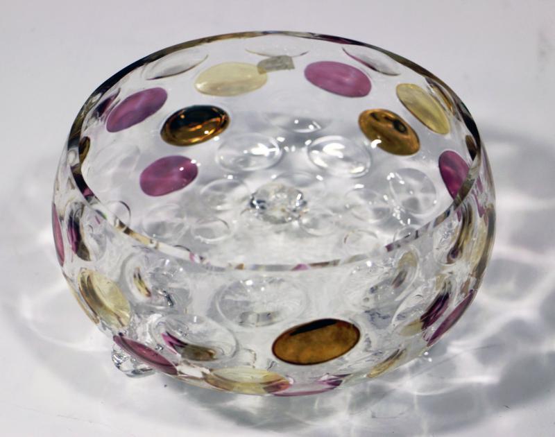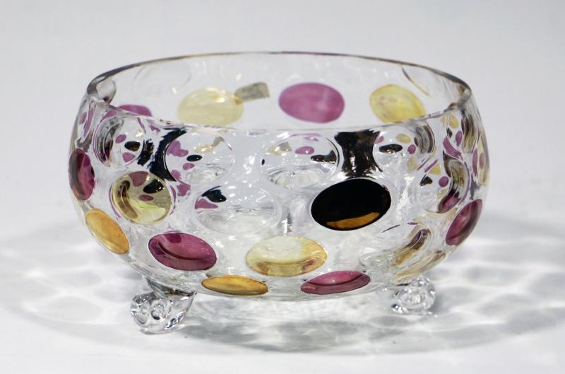 Czech Cottage Footed Bowl Art Glass Dish.