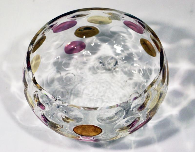Mint condition art glass footed bowl with Czech Cottage tag.