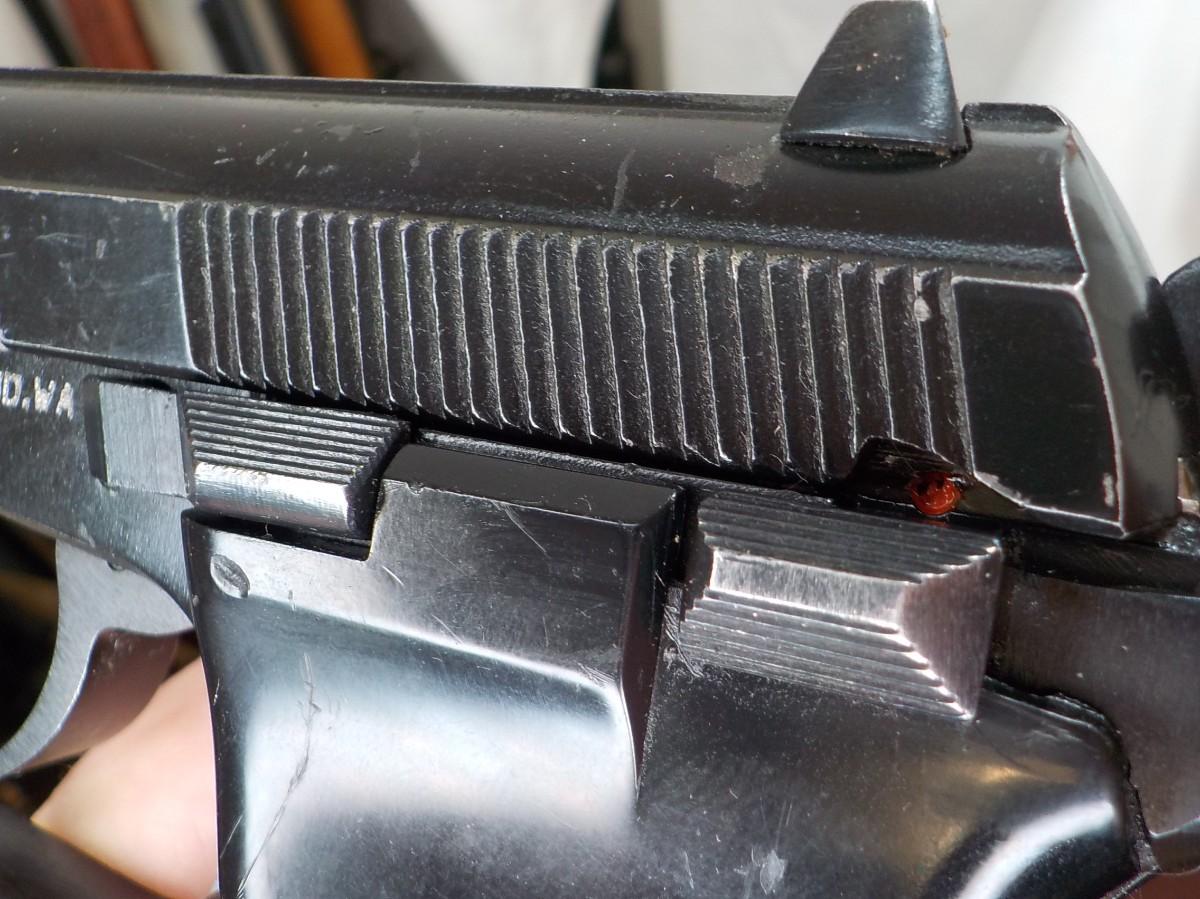 Mag holds 12 rounds, Military style with holster extra mag. and lanyard. action smooth and very sloid pistol with metal design, tested accuracy of 55 yards.