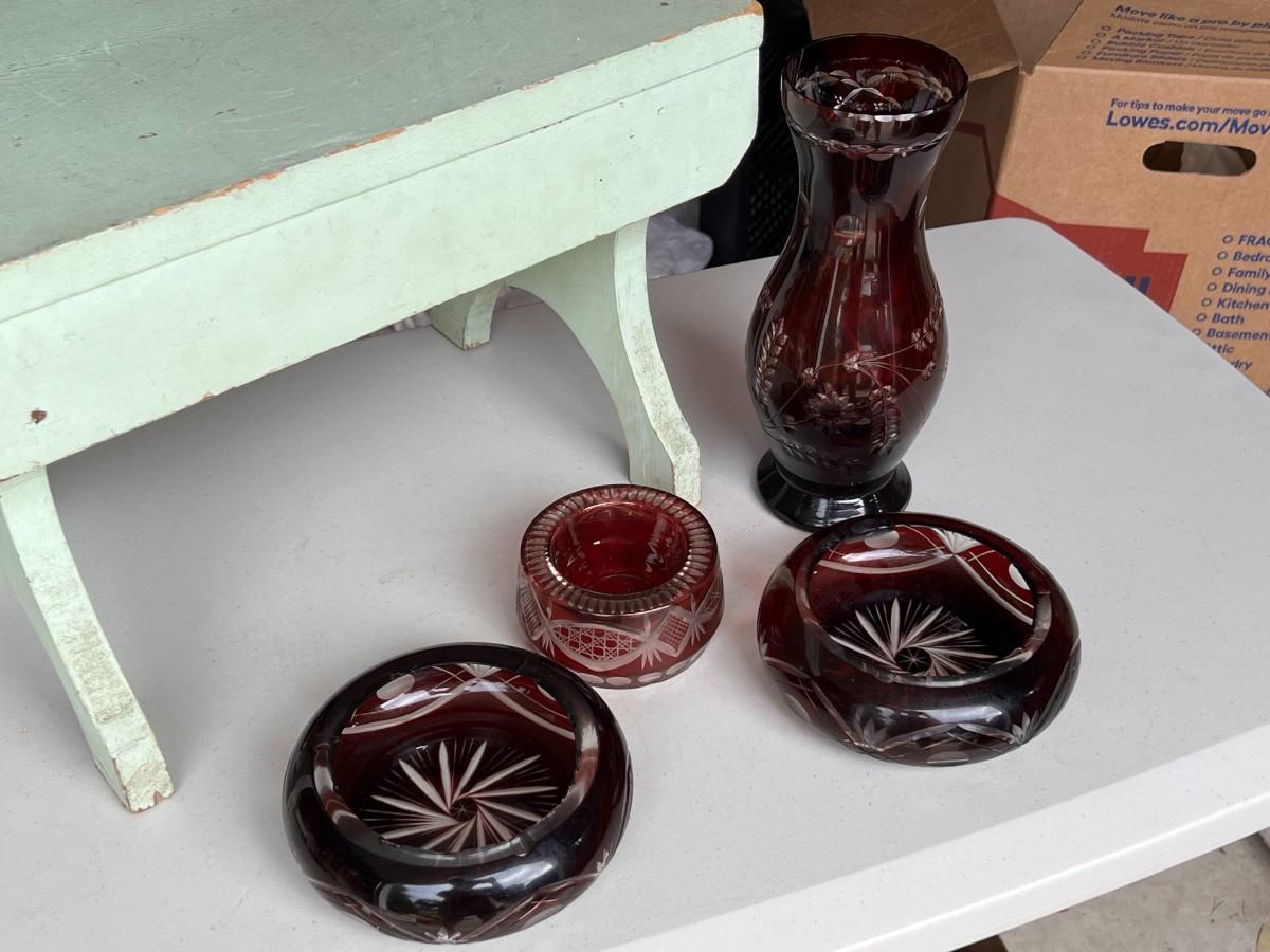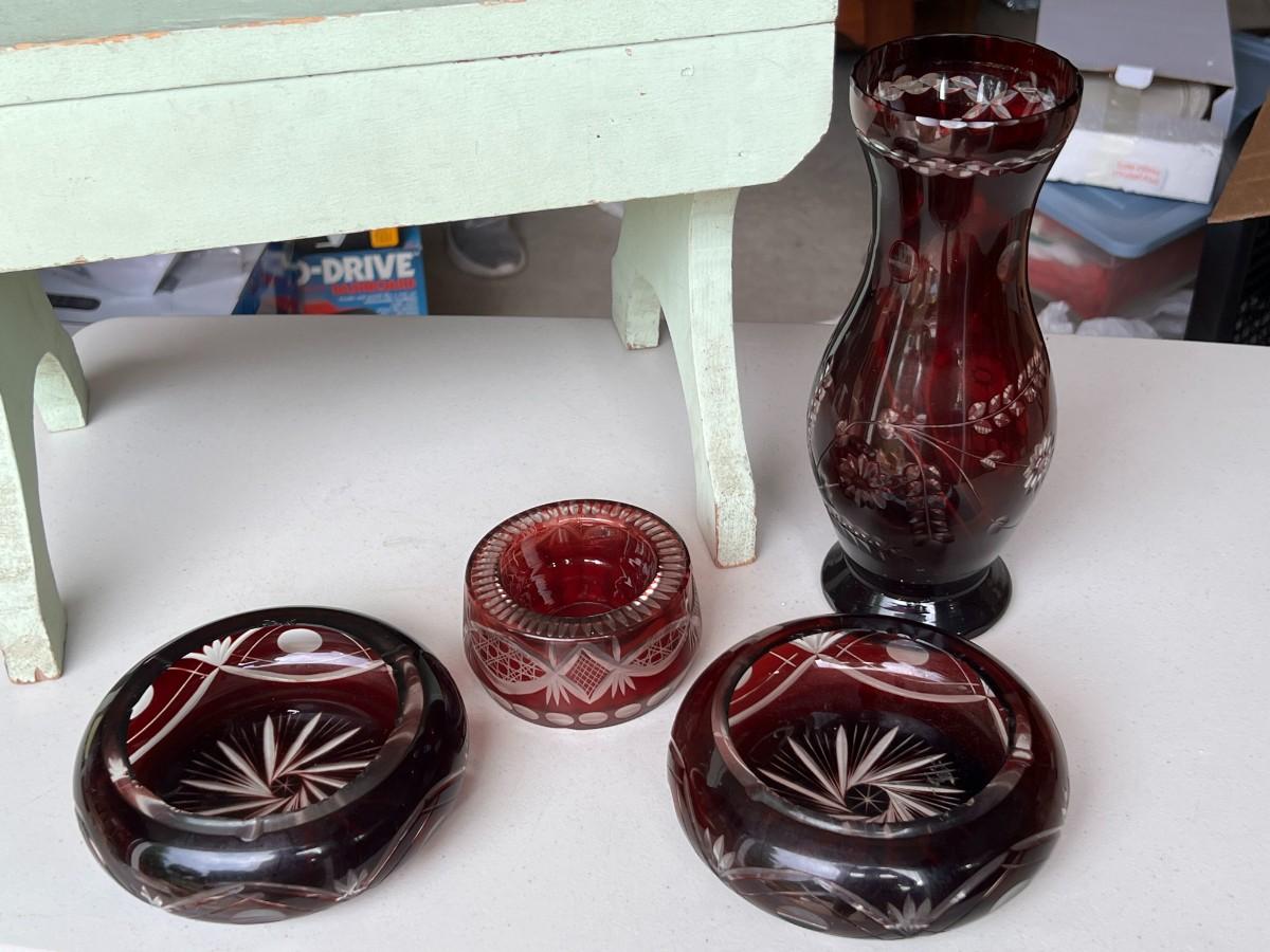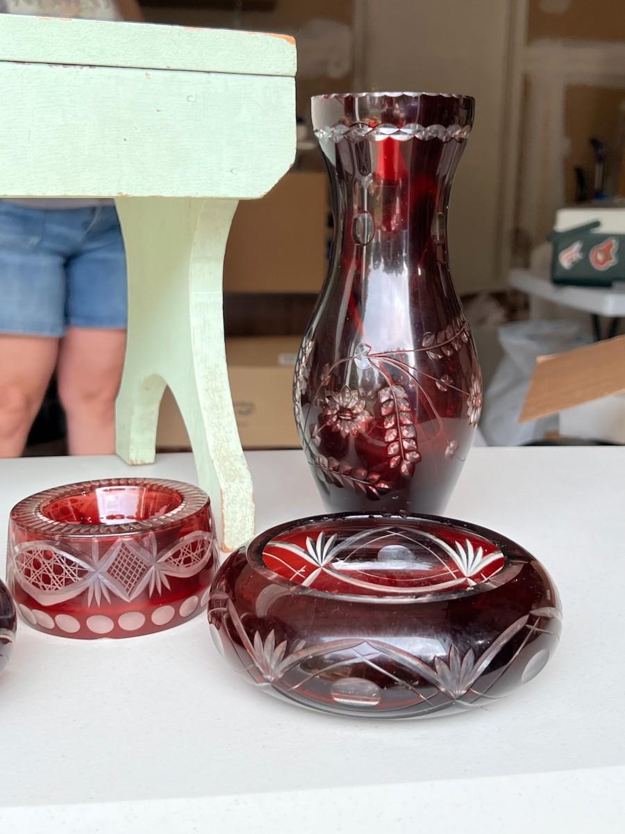 Czech Republic Ruby Cut to Clear Vintage Glass Lot