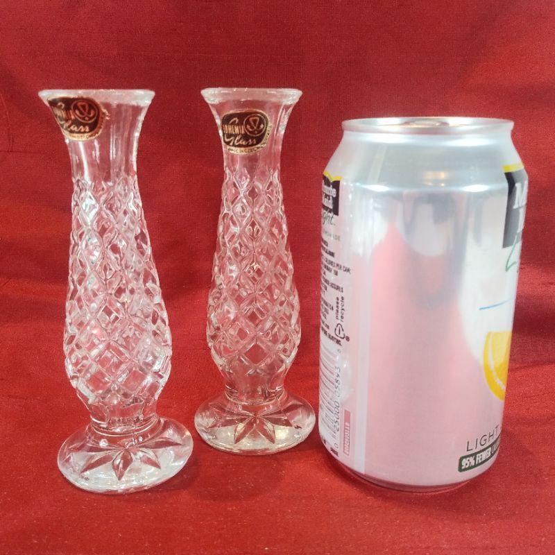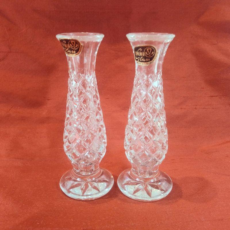 These are older bud vases that have never been used - "New Old Stock". They are marked Bohemia Glass made in Czechoslovakia and are 5 1/2-inches tall. Very sweet. Mother's Day Gift Idea.