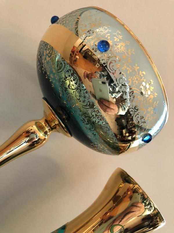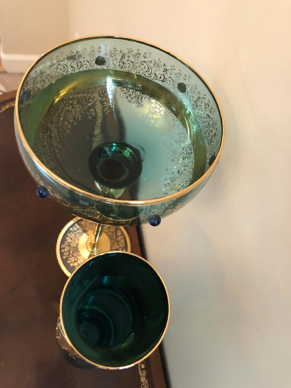 In excellent condition, Czech or Bohemian glass, approximately 14" tall for the stem.