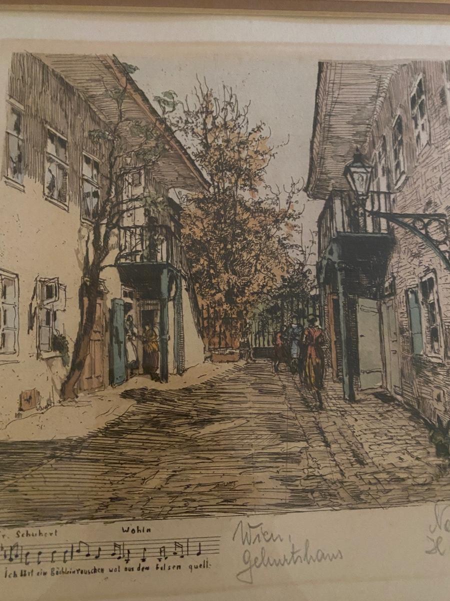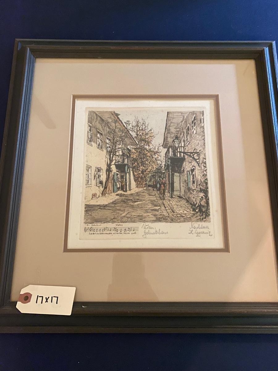 Czoernig/ Schubert Original Colored Etching Framed Signed 17x17 includes certificate of authenticity