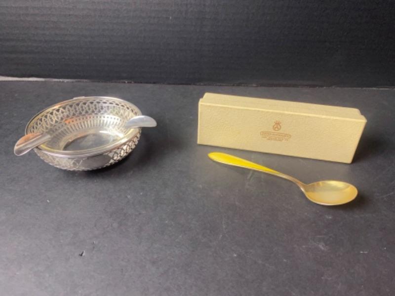 D - 1000. Tiffany & Co. Sterling Silver Ash Tray & Enamel Sterling Spoon