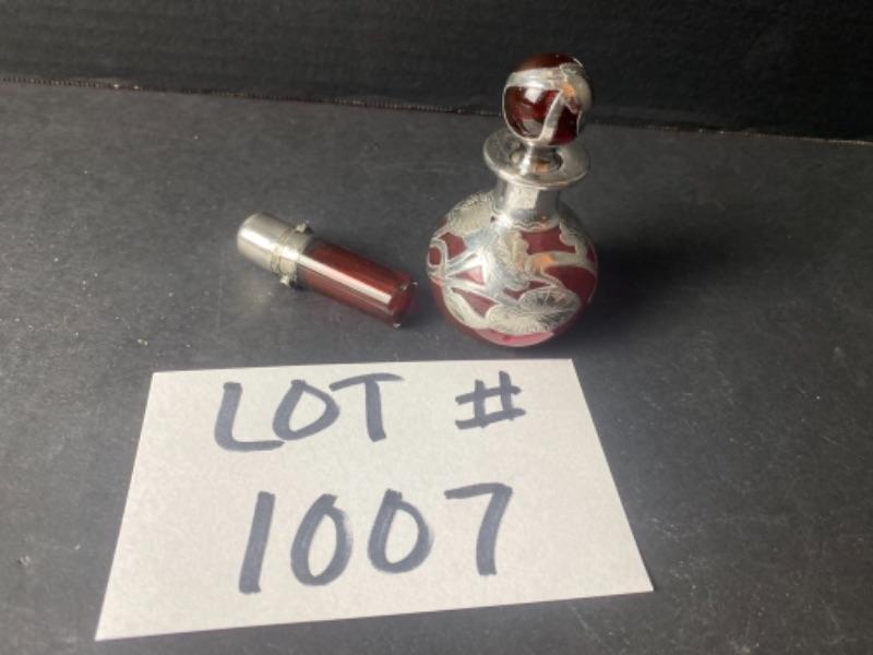 Vintage Cranberry Glass & Sterling Silver Bottles -