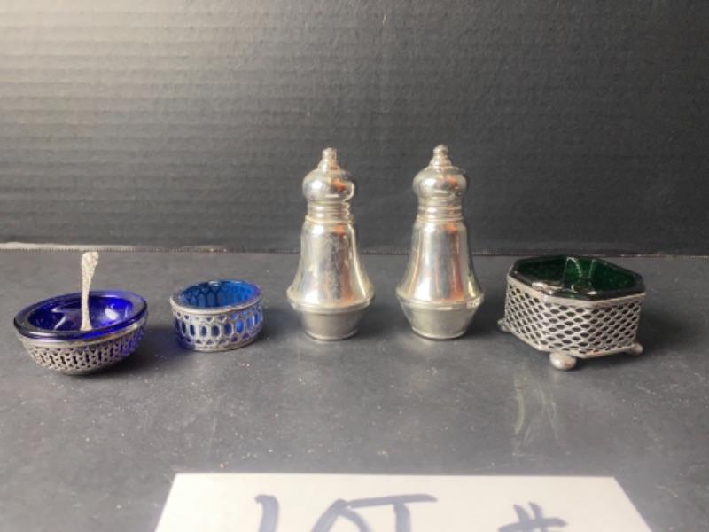 D - 1008 Sterling Silver Salt Dishes & Weighted S/P Shakers