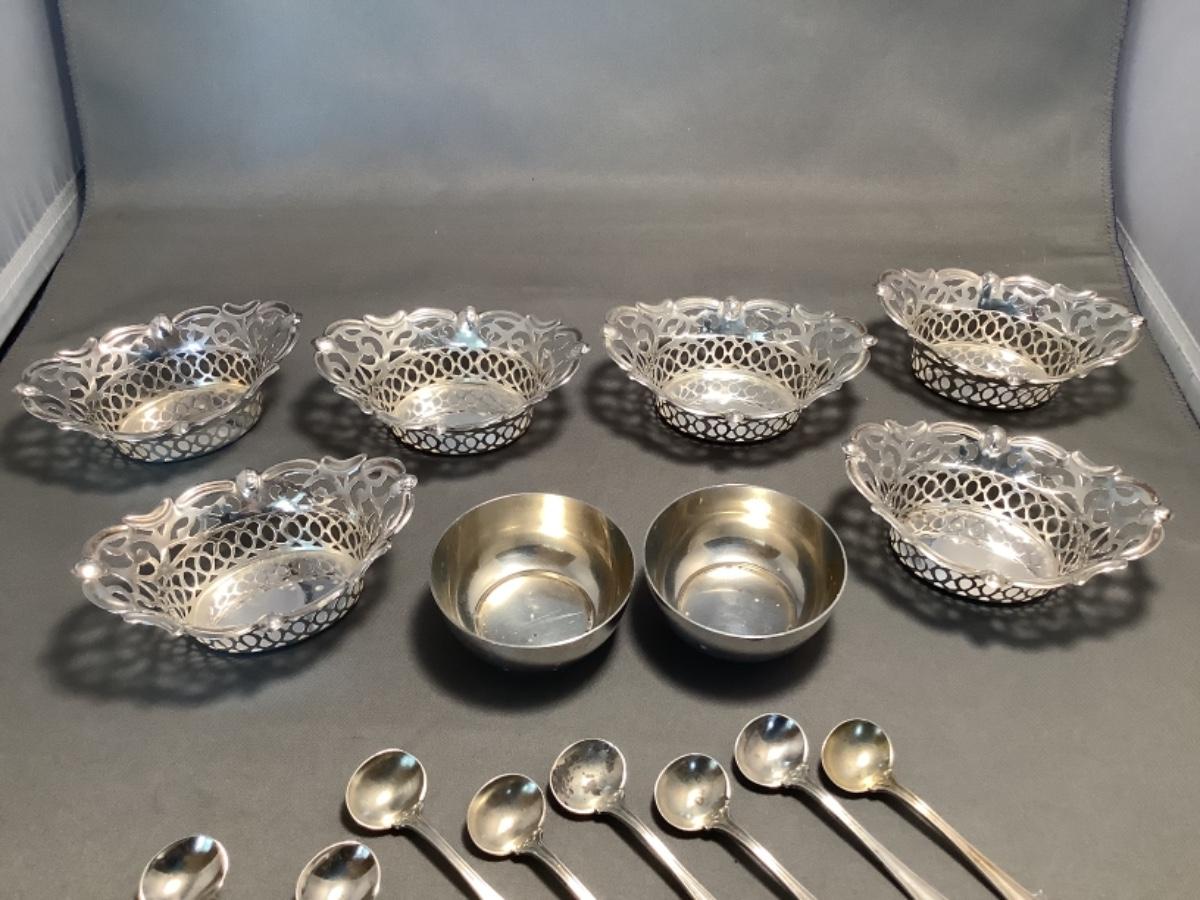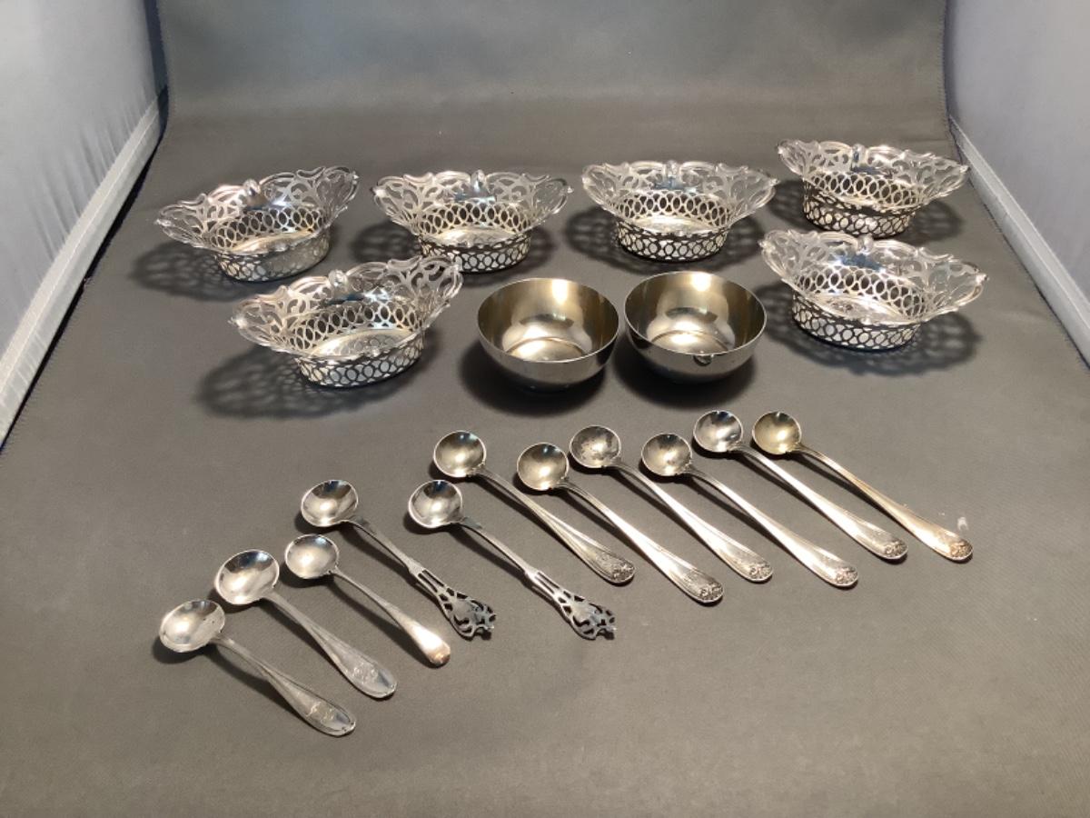 D 1341. Lot of Sterling Silver Nut / Salt Dishes & Spoons