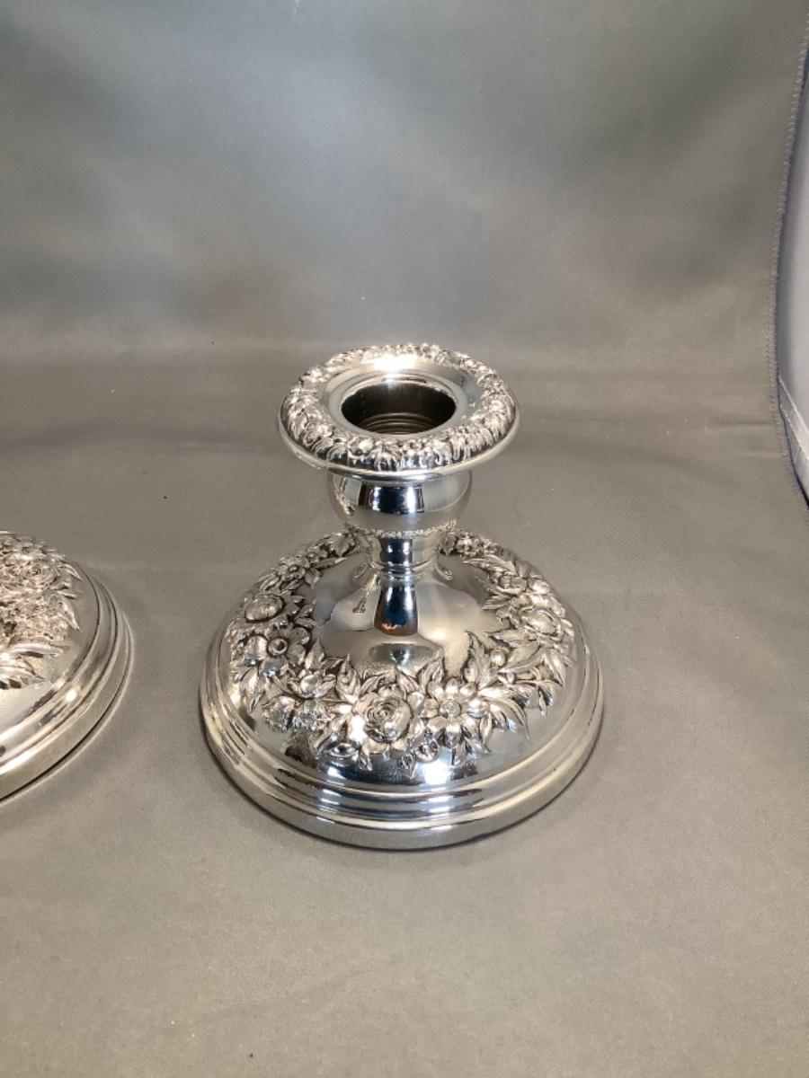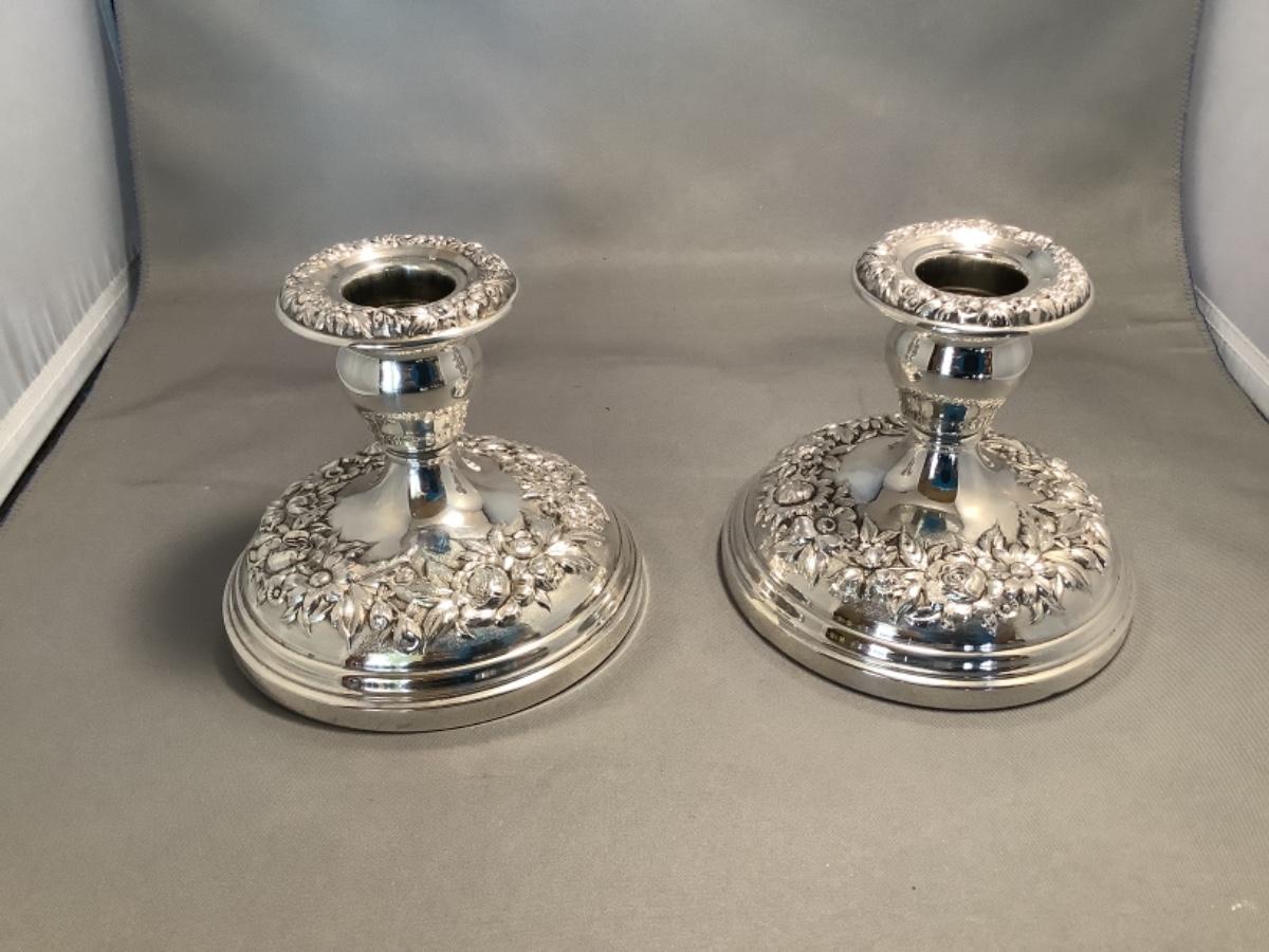 Pair of Sterling Silver Weighted S. Kirk & Son Repousse Candle Holders