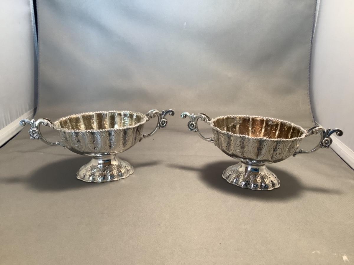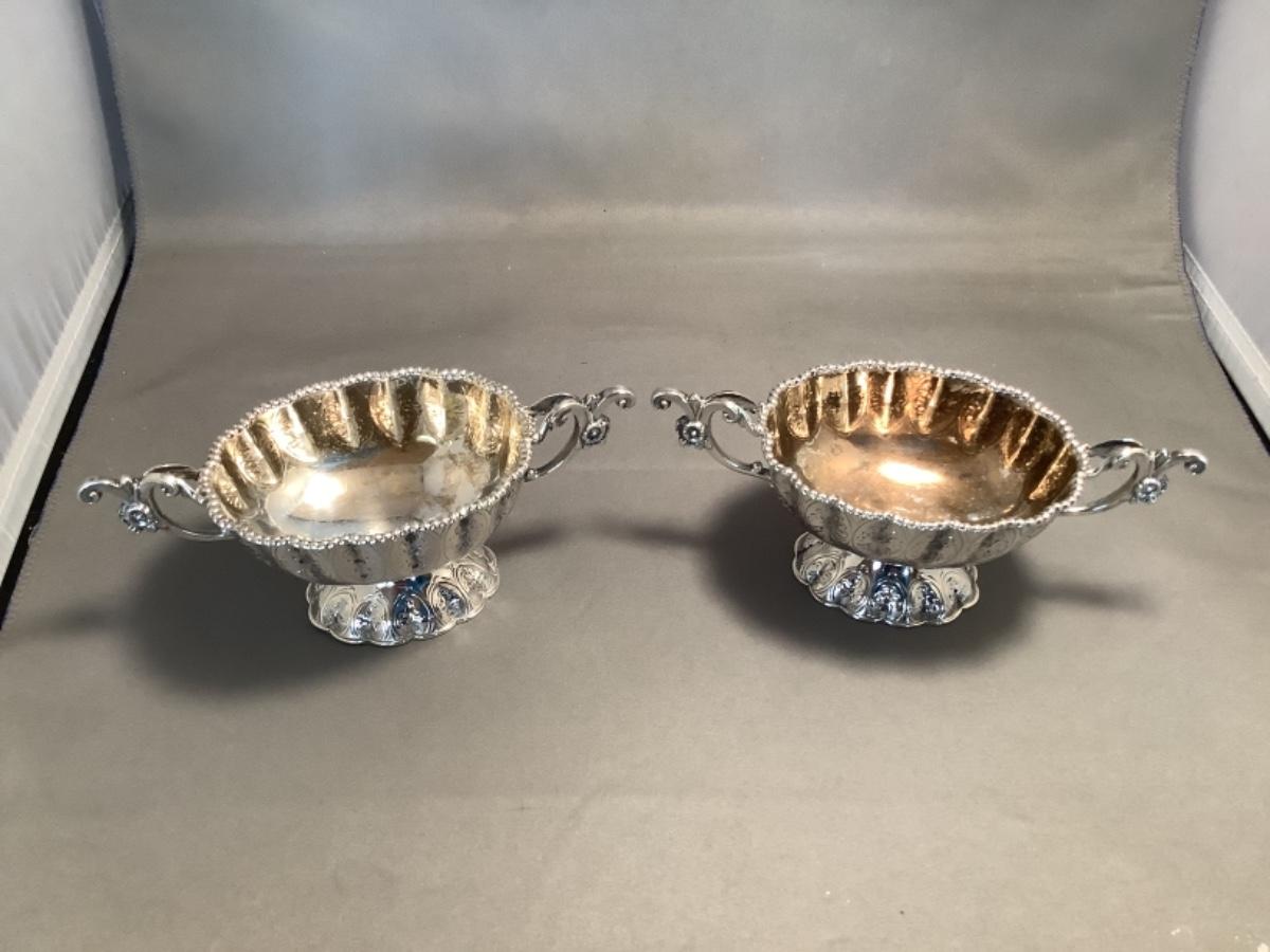 D. 1344 Pair of Sterling Silver Oval Pedestal Fluted Nut Dishes by M. Gail & Son