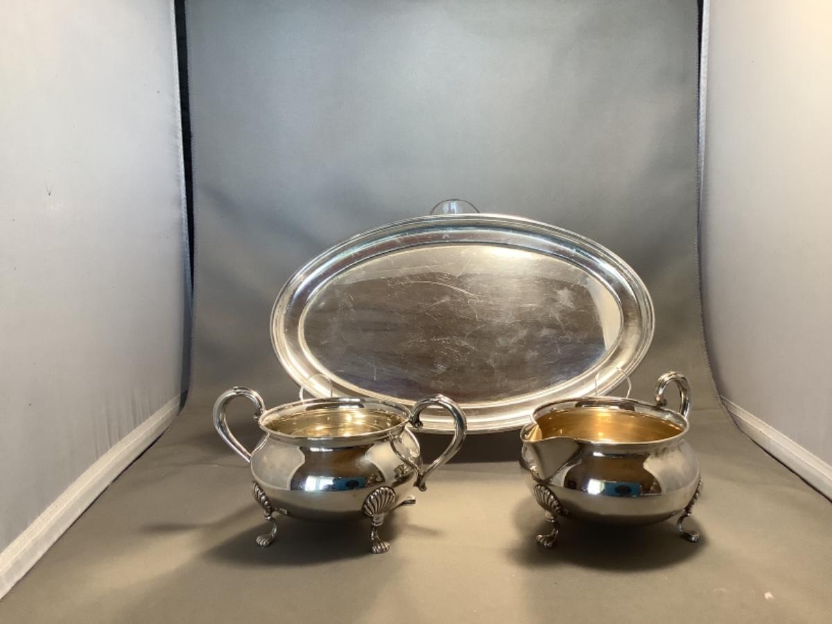 Fisher Sterling Silver Footed Cream/Sugar with Tray