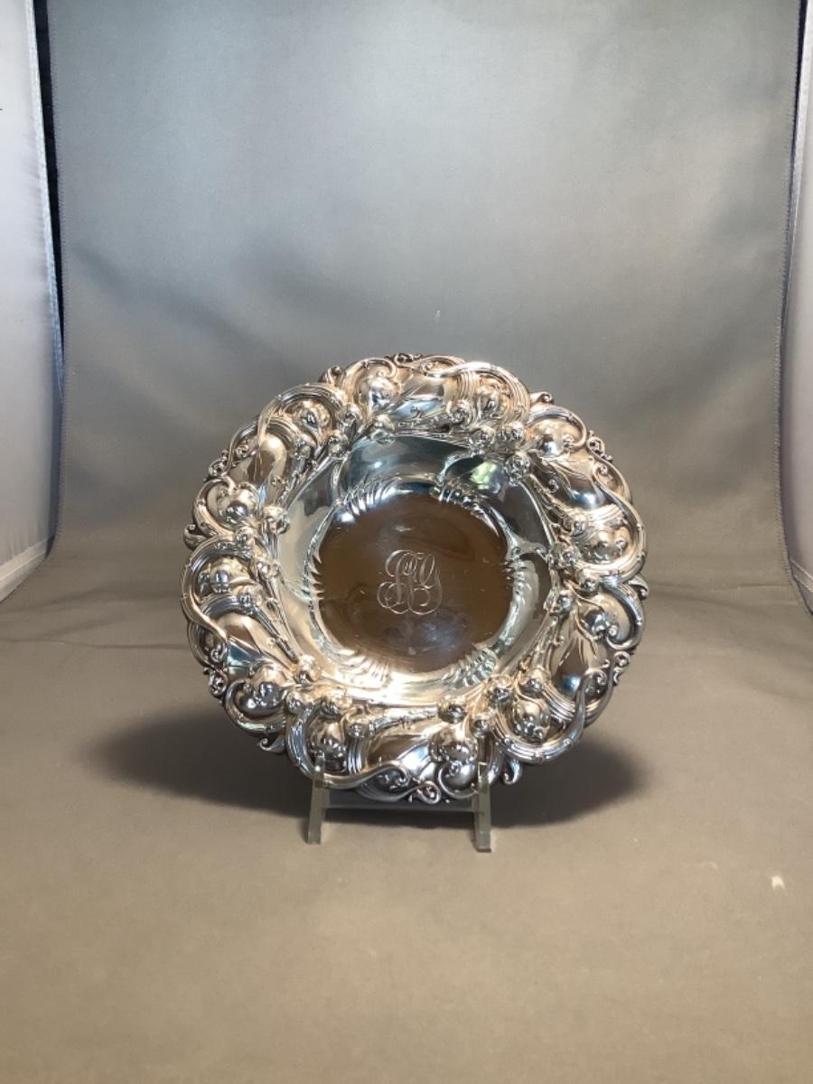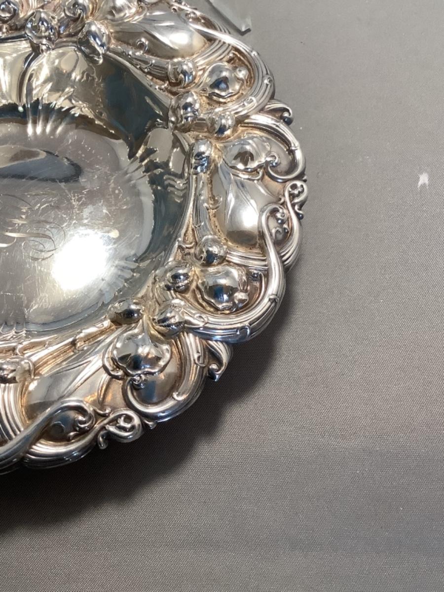 D. 1351 Whiting Sterling Silver Repousse Lily of the Valley Bonbon  Bowl