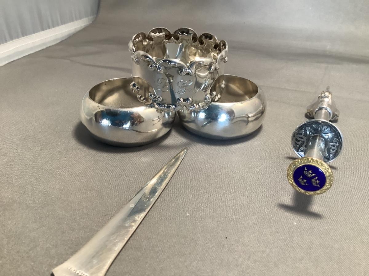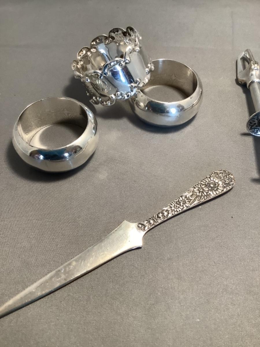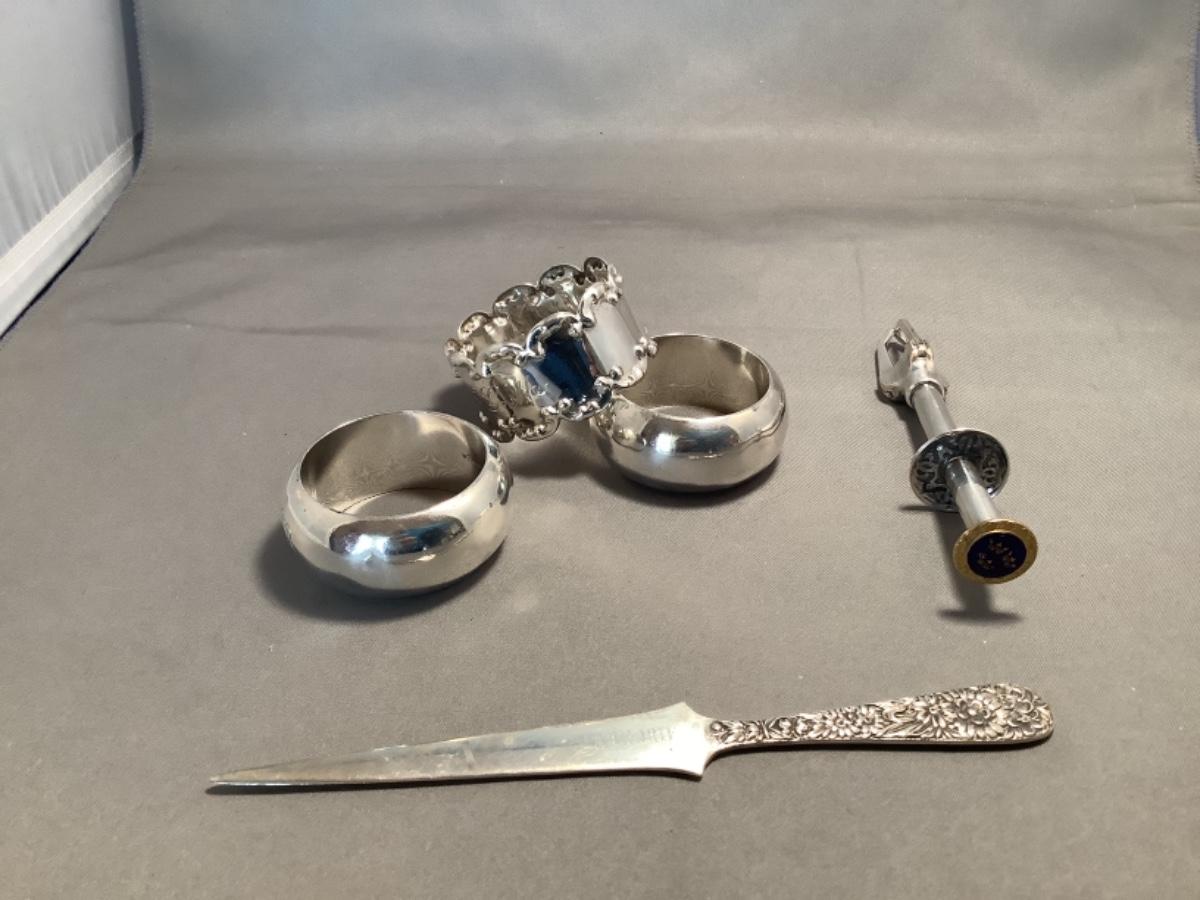 D 1354. Three Sterling Silver Napkin Rings, Kirk & Son Sterling Silver Letter Opener