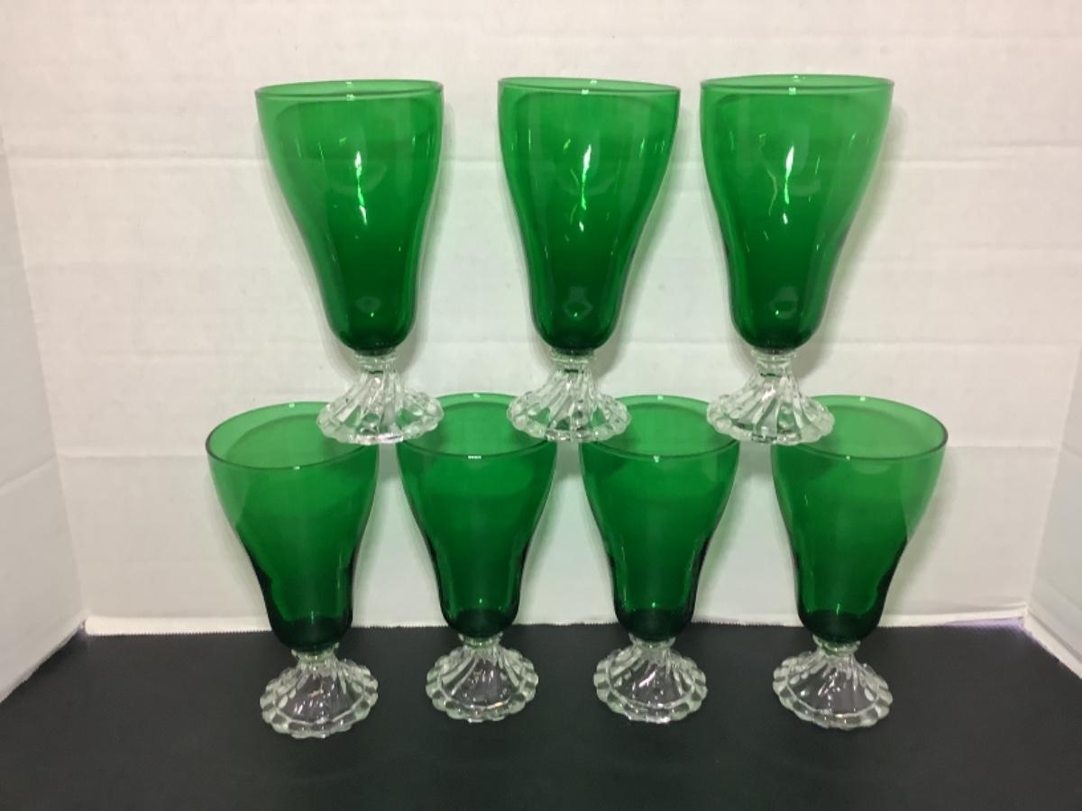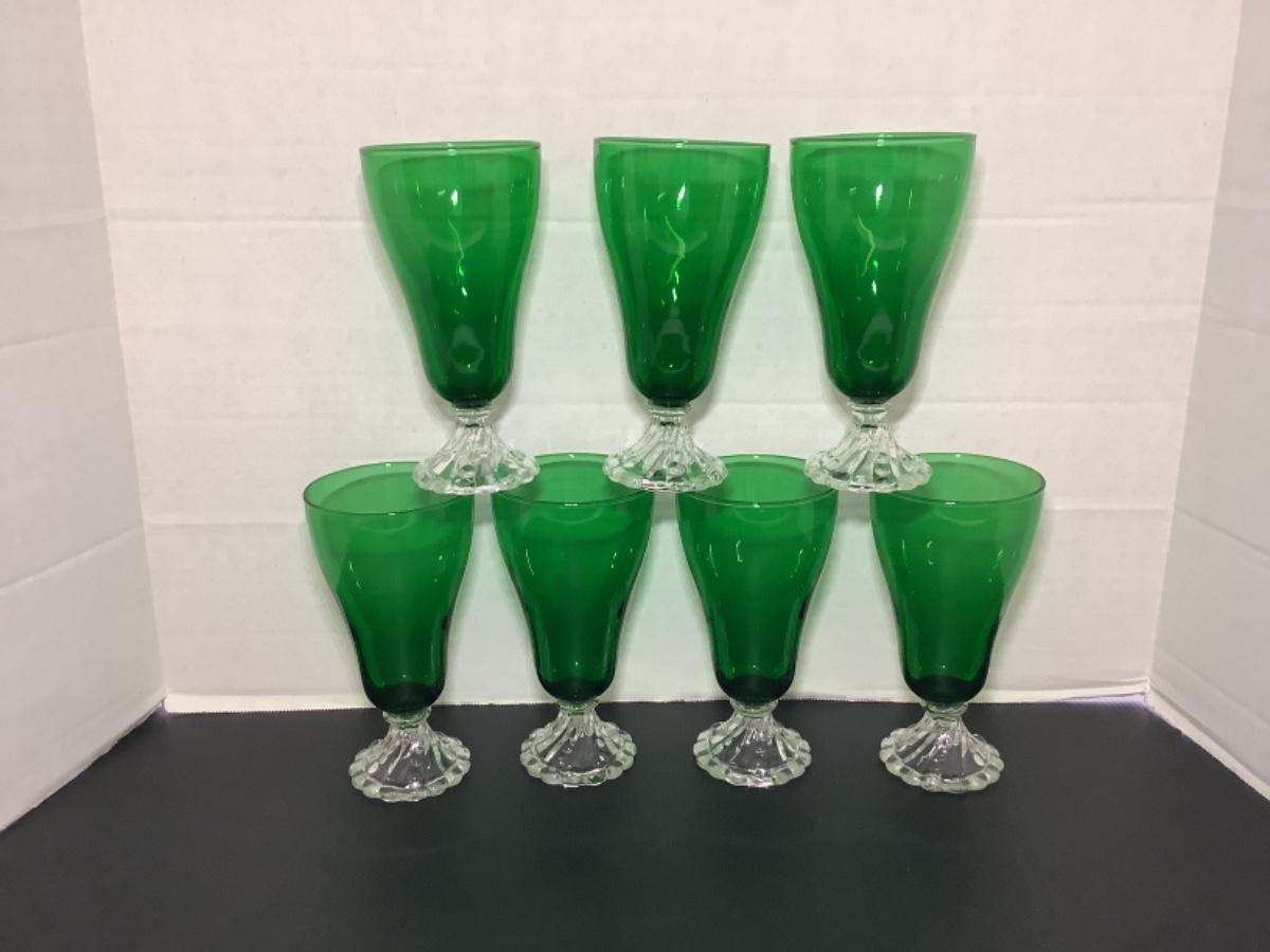 D - 141. Set of Seven Antique Anchor Hocking Forest Green Boopie Ice Tea Glasses