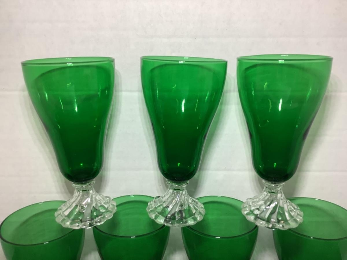 Set of Seven Antique Anchor Hocking Forest Green Boopie Ice Tea Glasses -