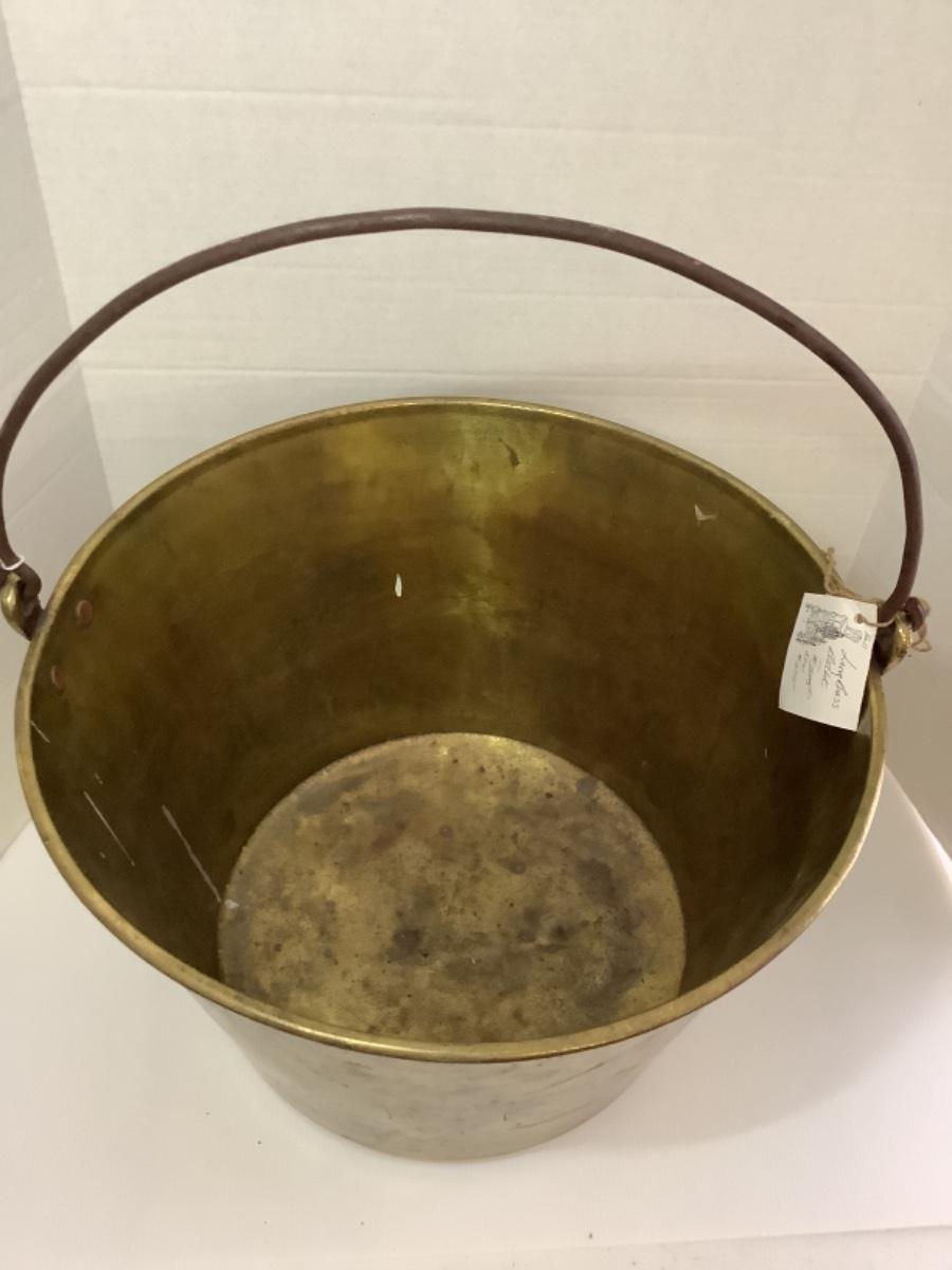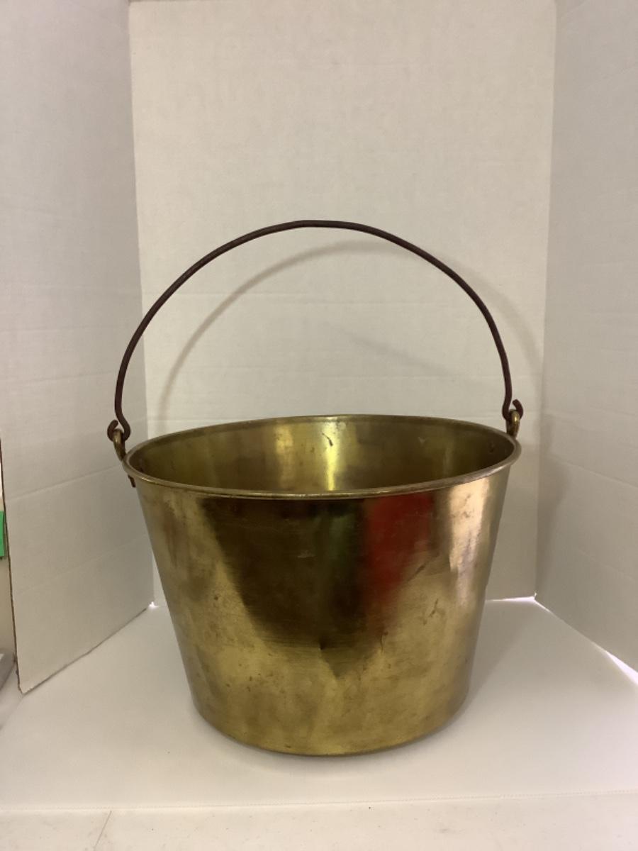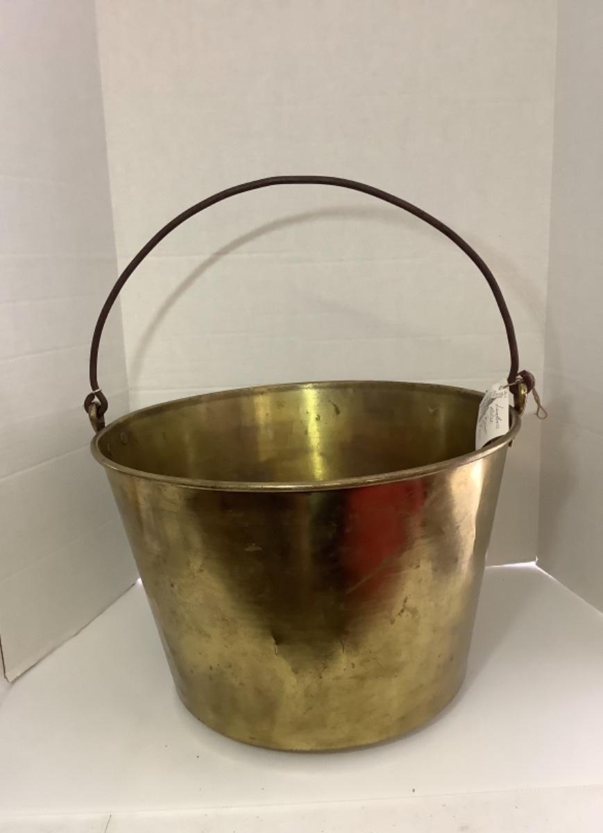 D - 156 Antique H. W. Hayden Brass “ Apple Butter “ Bucket with Cast Iron Handle
