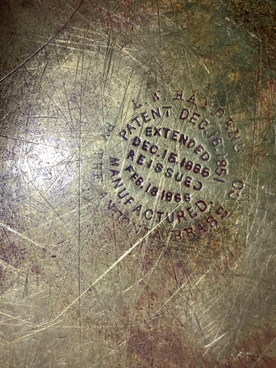 Antique H. W. Hayden Brass “ Apple Butter “ Bucket with Cast Iron Handle , Hiram W. Hayden of Waterbury, Conn. and manufactured by The Antonia Brass Co.