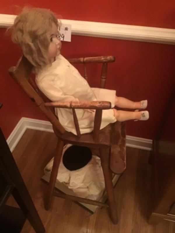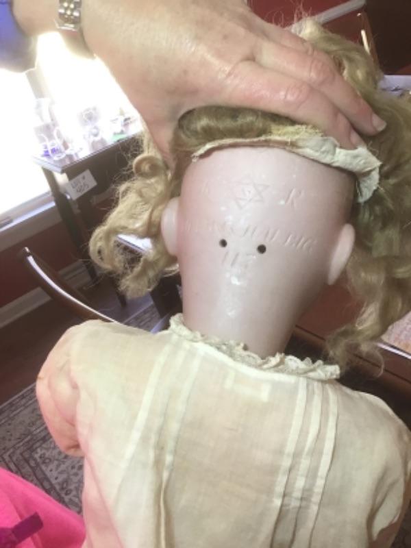 Antique Simon Halbig Porcelain Doll - 26” Tall, She has Glass Eyes and they move, her mouth does not open, Bisque Head and has composition jointed body and human hair.