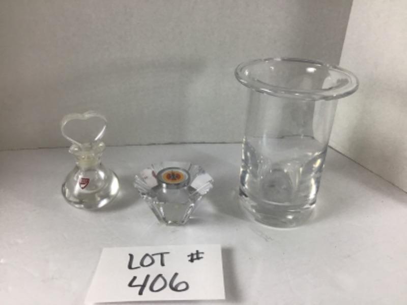 1 ) Small Bottle with Heart Stopper ( has small chip on rim )