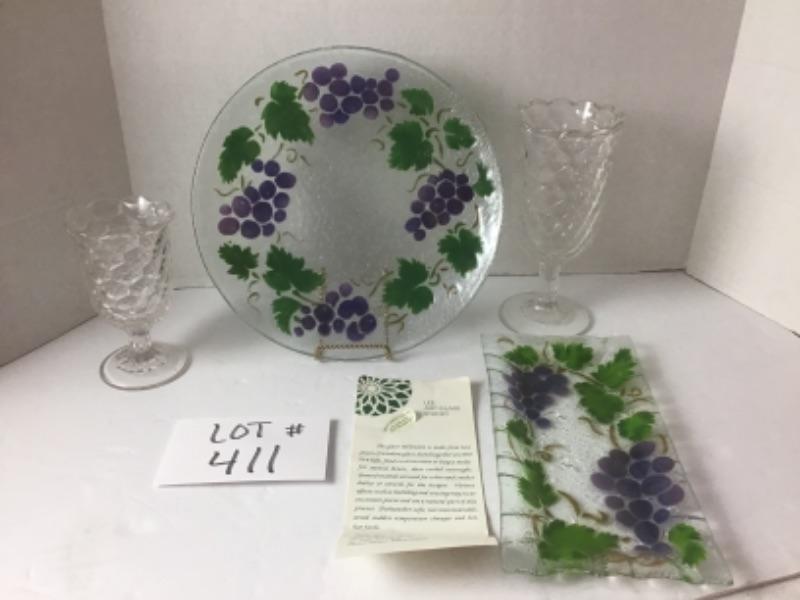 Lot of “ Grapes “ Lee Art Glass Tableware -