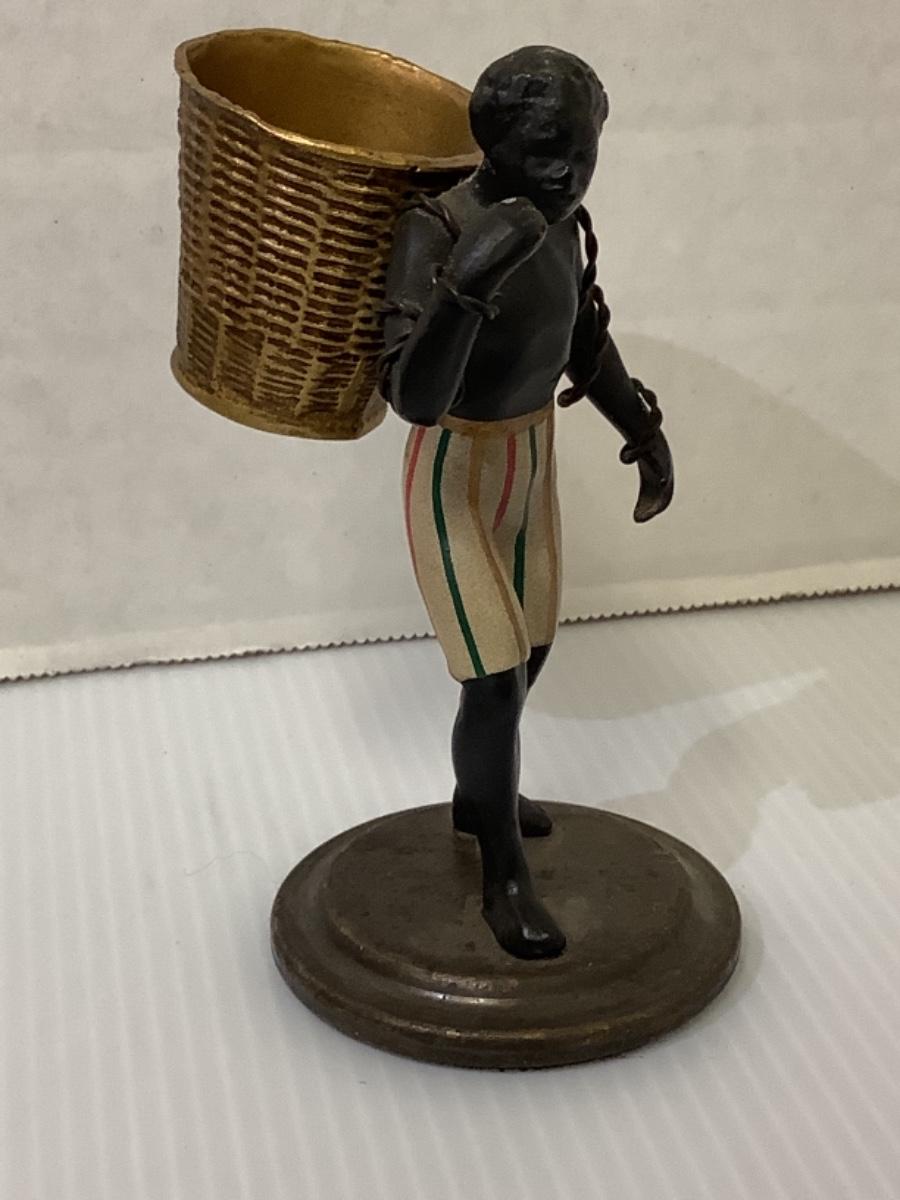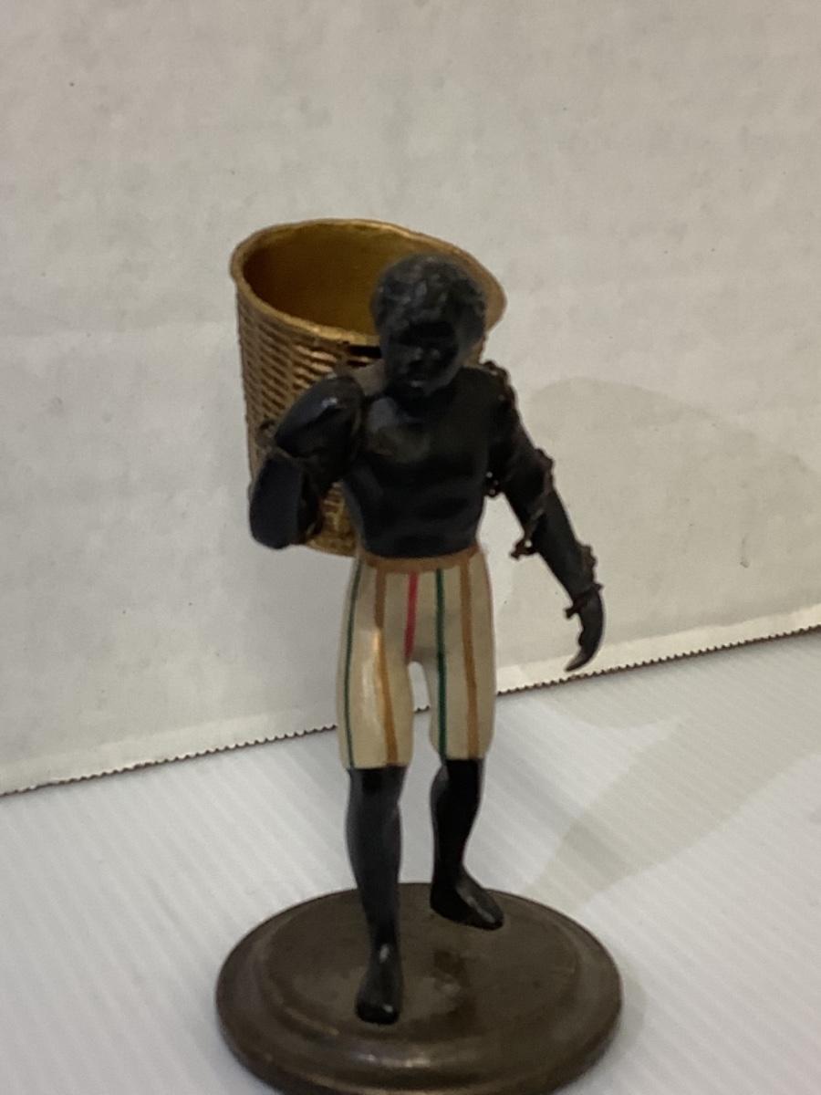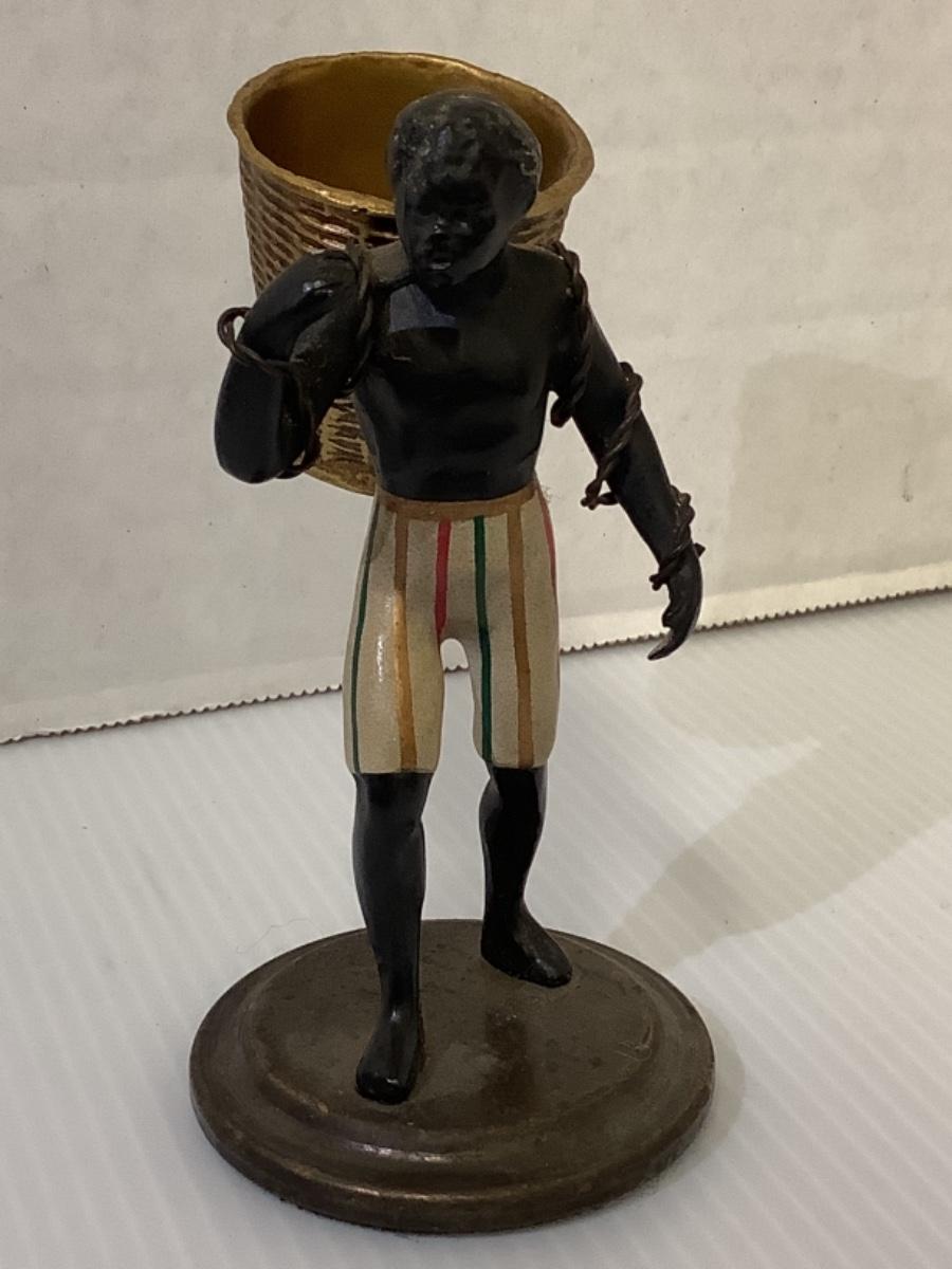 Antique Cold Painted Bronze Blackamoor Toothpick Holder or Smoking Accessory