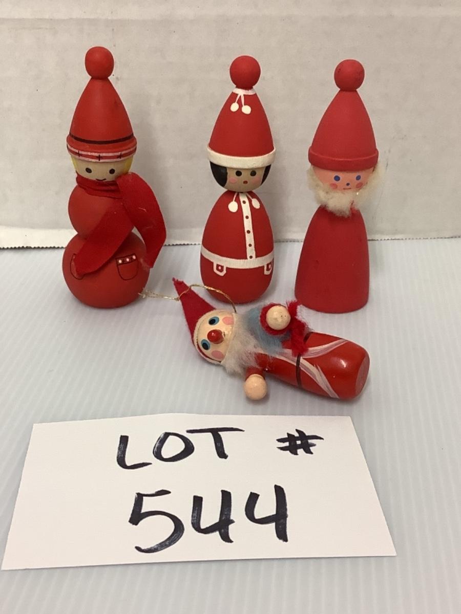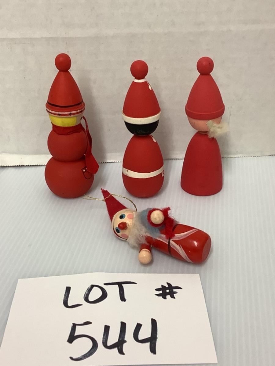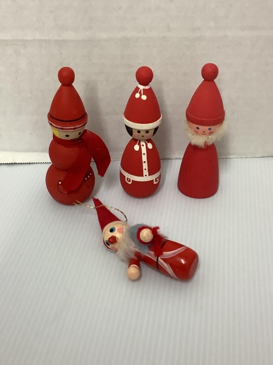 D - 544 Three Vintage Wooden Holiday Figures & One Ornament