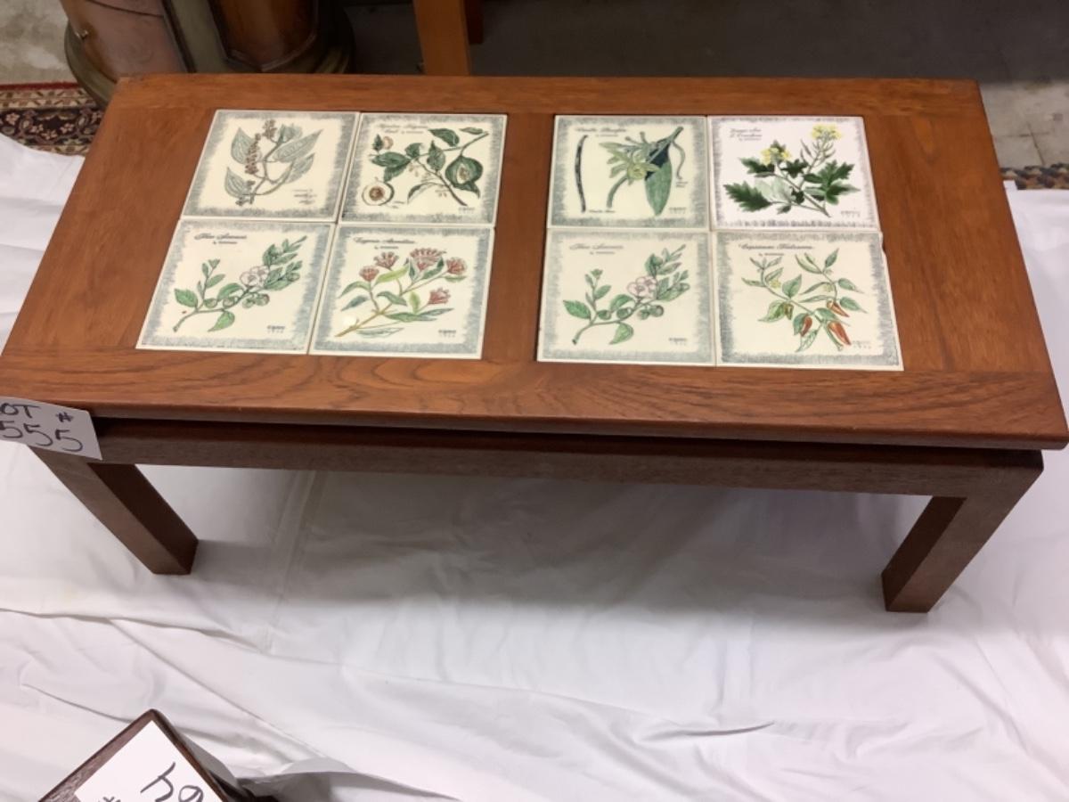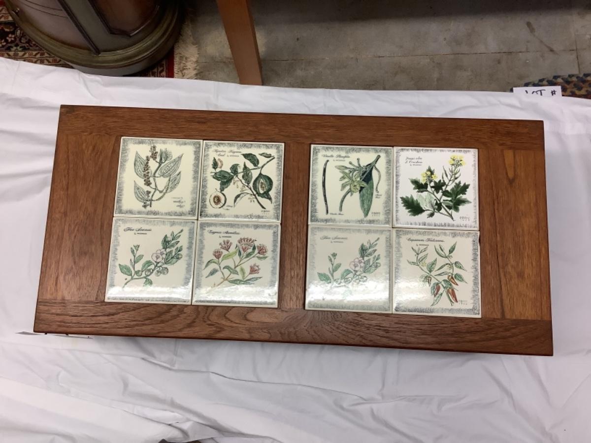 Uniquely Beautiful Wooden Coffee Table with 8 Painted Tiles. Inserted in the top of the Table by Charles McCormick of Baltimore MD
