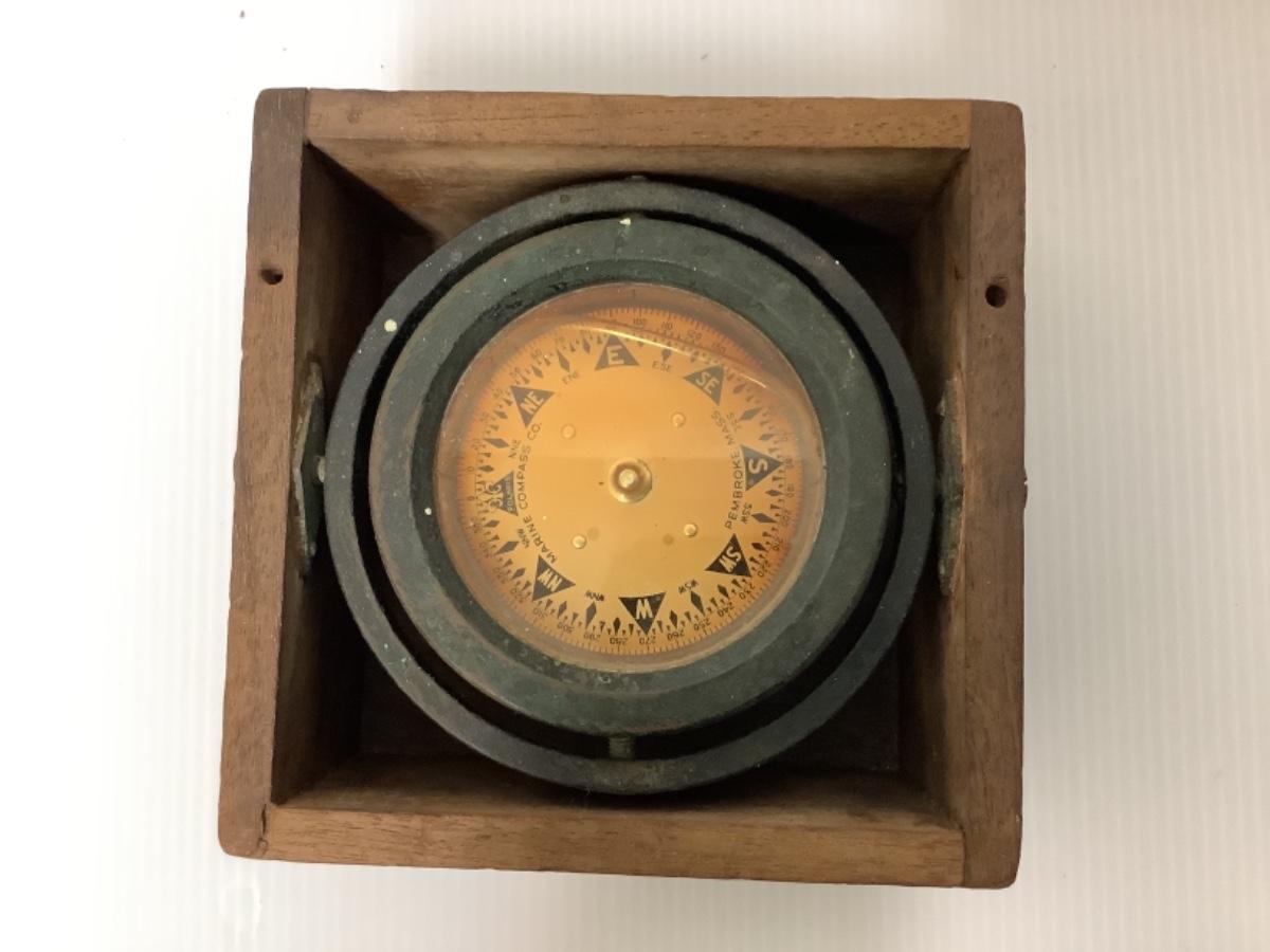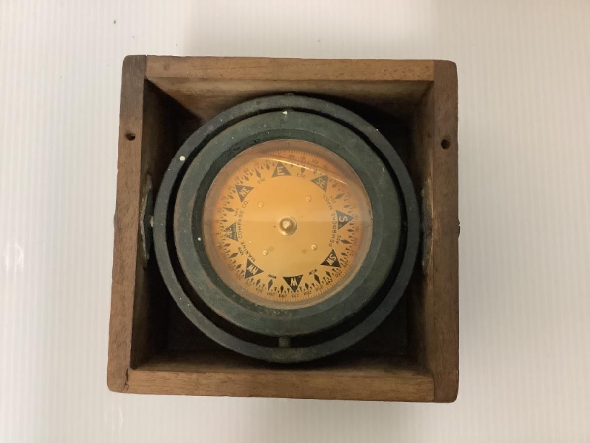 Antique Boxed Compass - Navigational Instrument by Marine Compass Co.