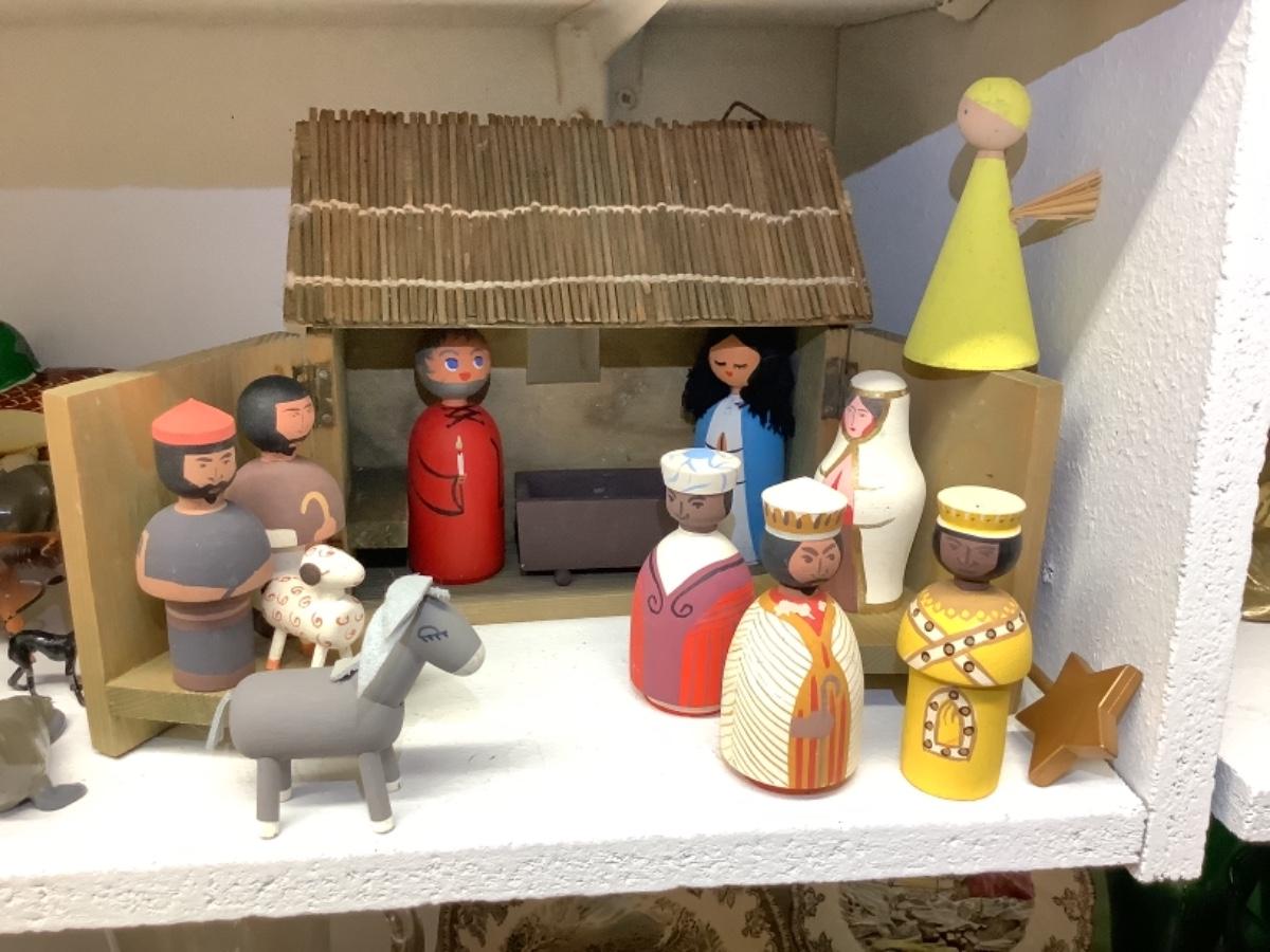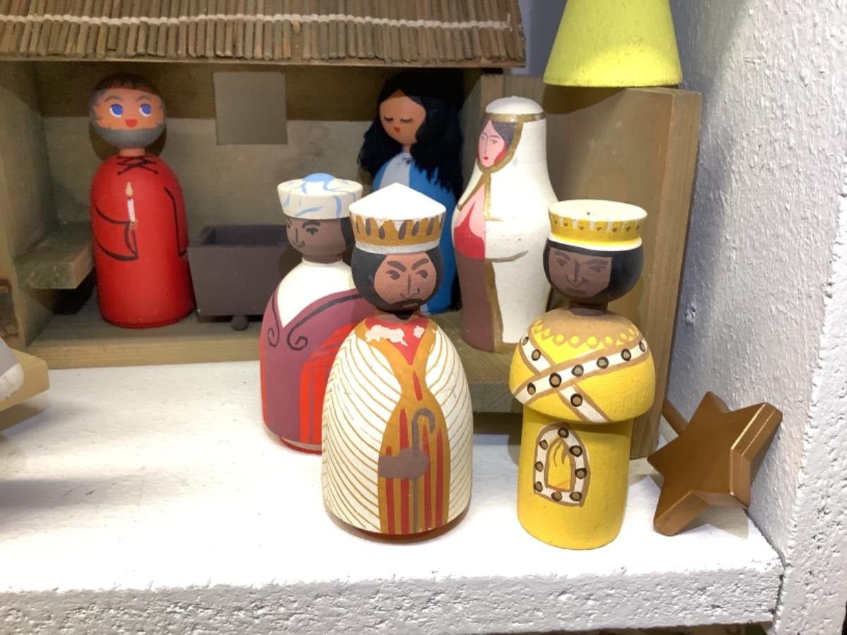 D - 564 Vintage Anne Beate Design Peg Doll Nativity & Vintage Bohusslojd 3 Kings Christmas Figures