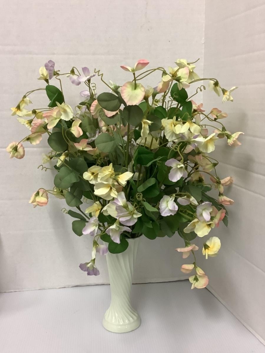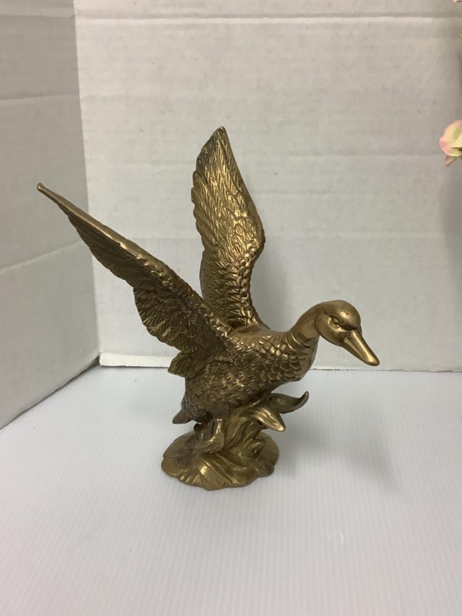 D - 569 Brass Mallard Duck Figure with Silk Flowers in Vase