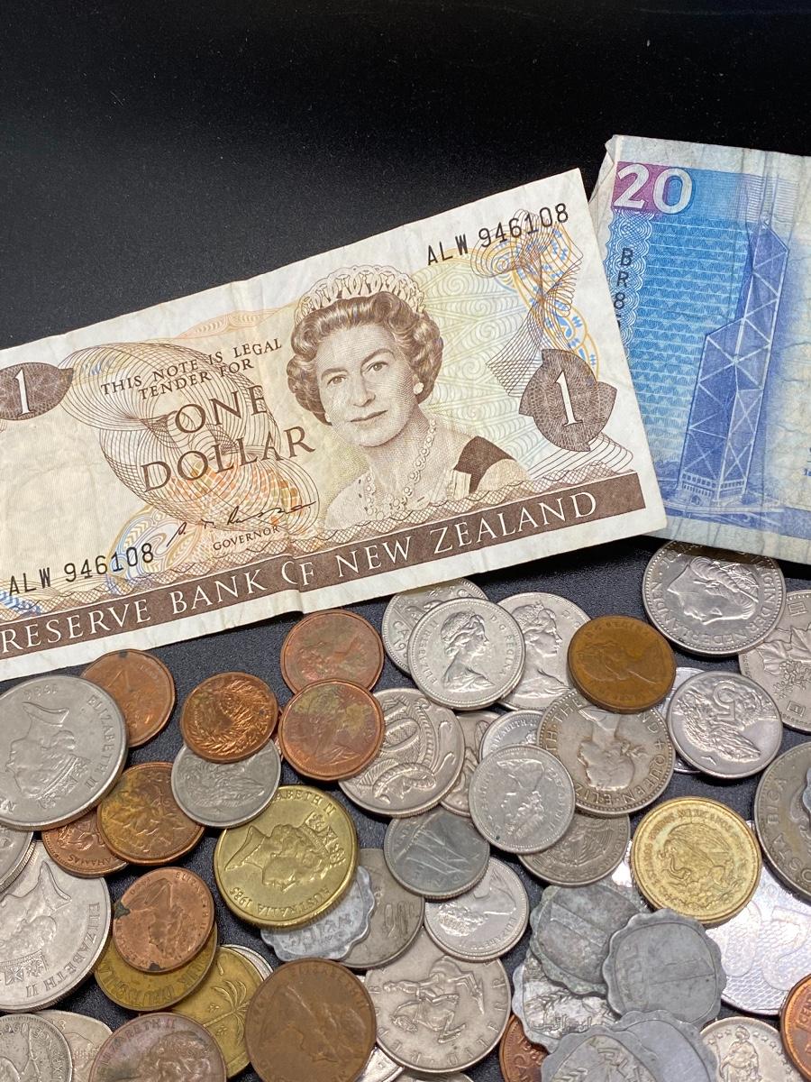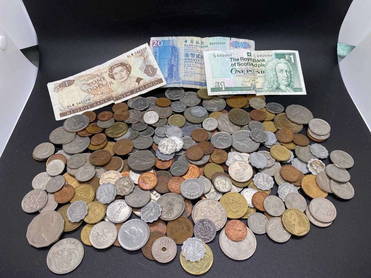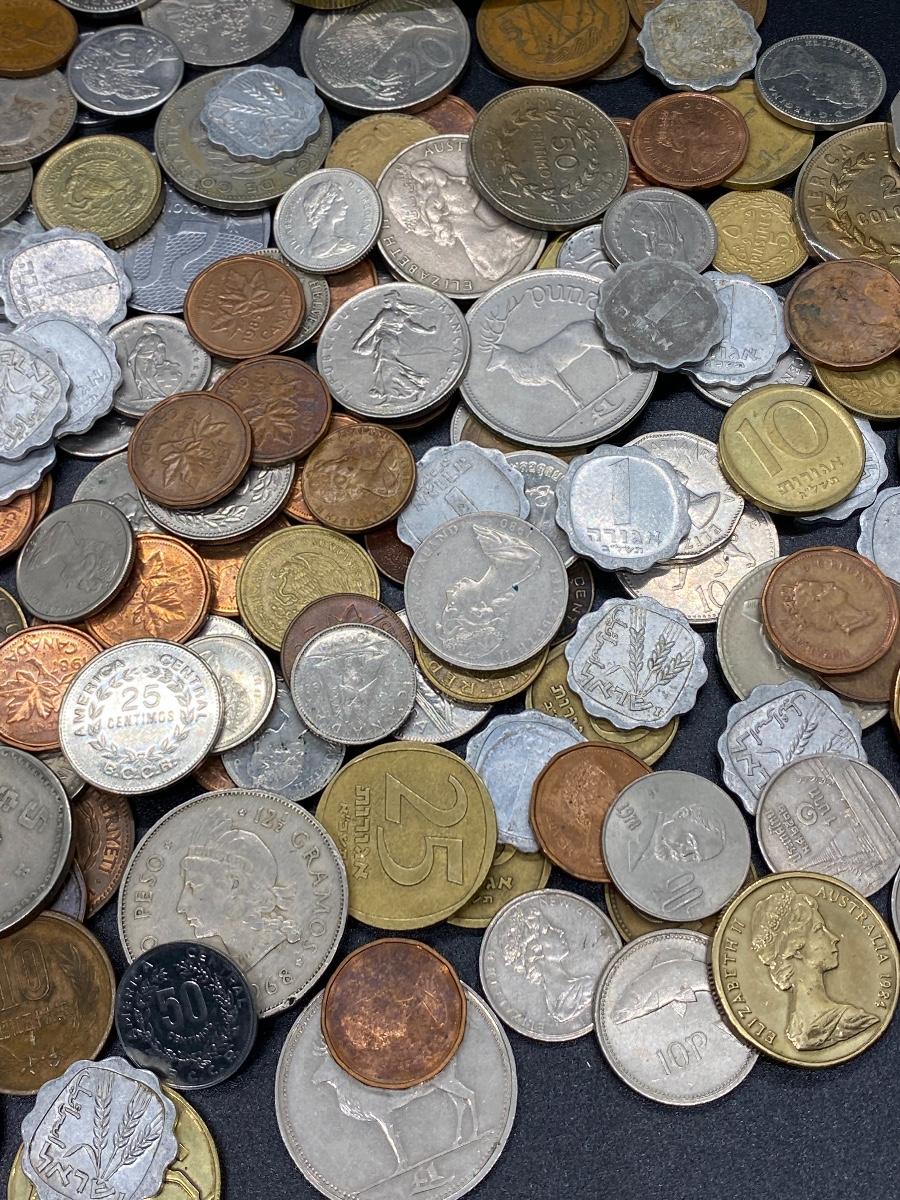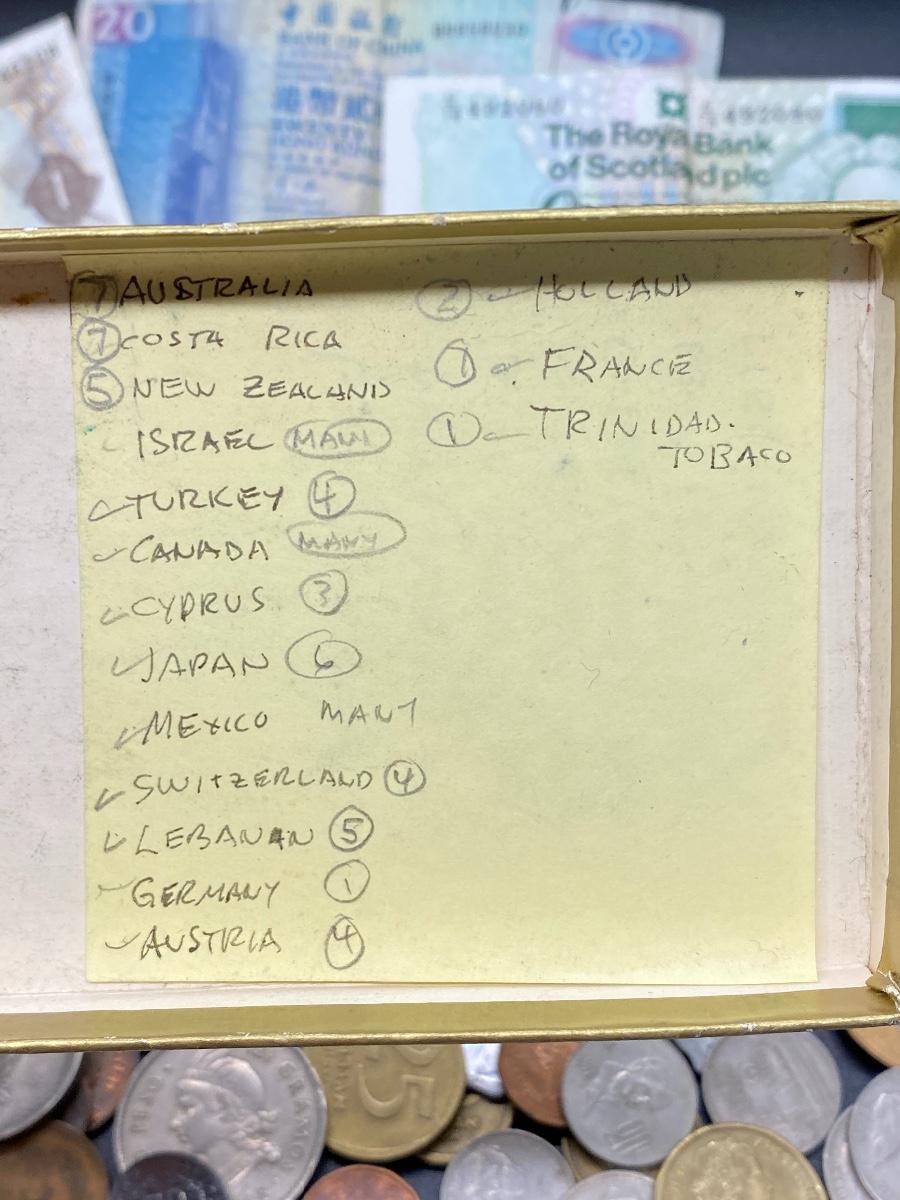 Mixed lot of foreign money. Great mix of countries and ages. A sticky not in the box has countries including Australia, Israel, Turkey, Japan, Germany, and many more. 16 countries listed, possibly more actually in the pile.